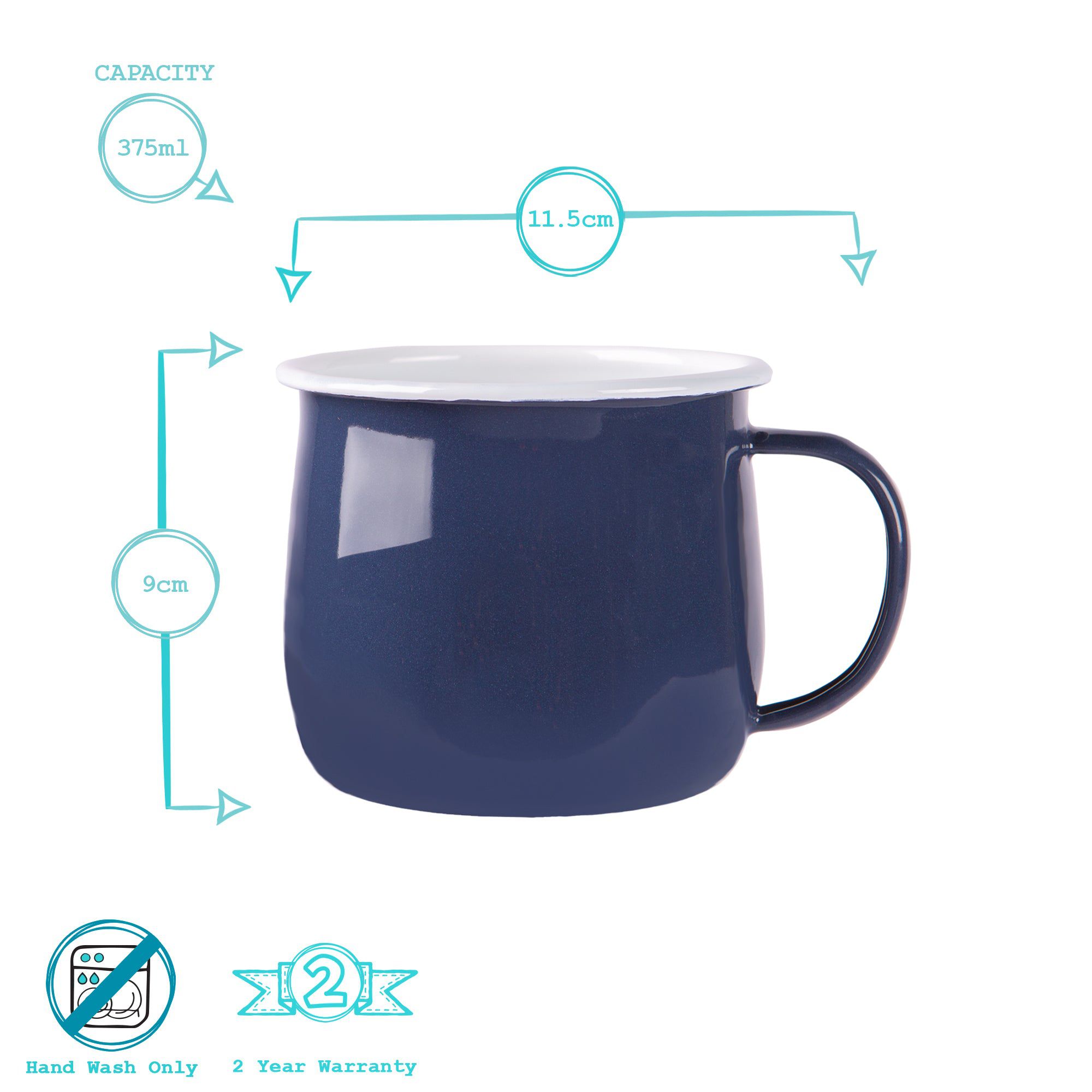 375ml Coloured Enamel Belly Mugs - Pack of Six