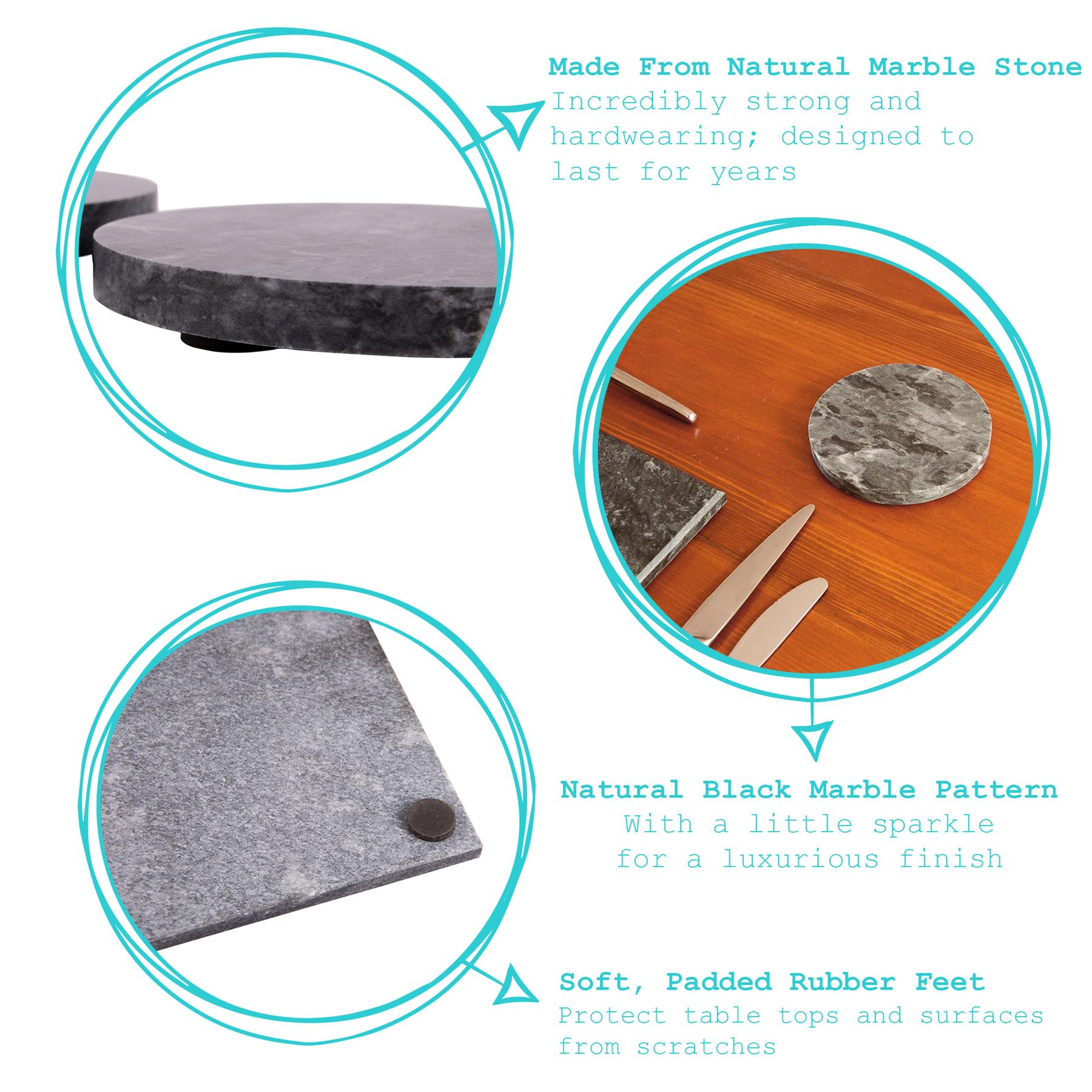 The perfect fusion of style and substance, the sturdy stone material of these mats makes them incredibly hard-wearing, while the crisp bevelled edging and natural marble pattern will provide a subtle accent of luxury to any interior.