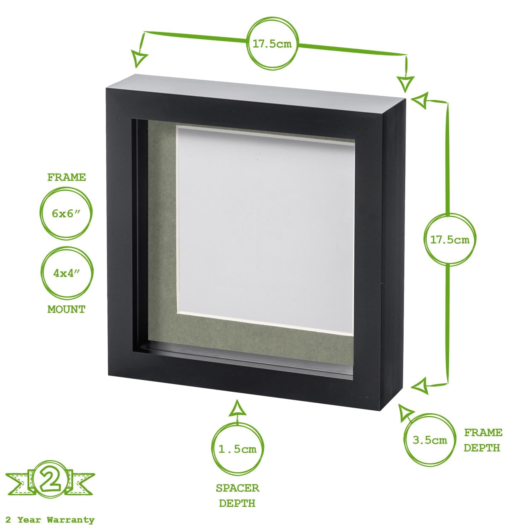Grey 6" x 6" 3D Box Photo Frame with 4" x 4" Mount