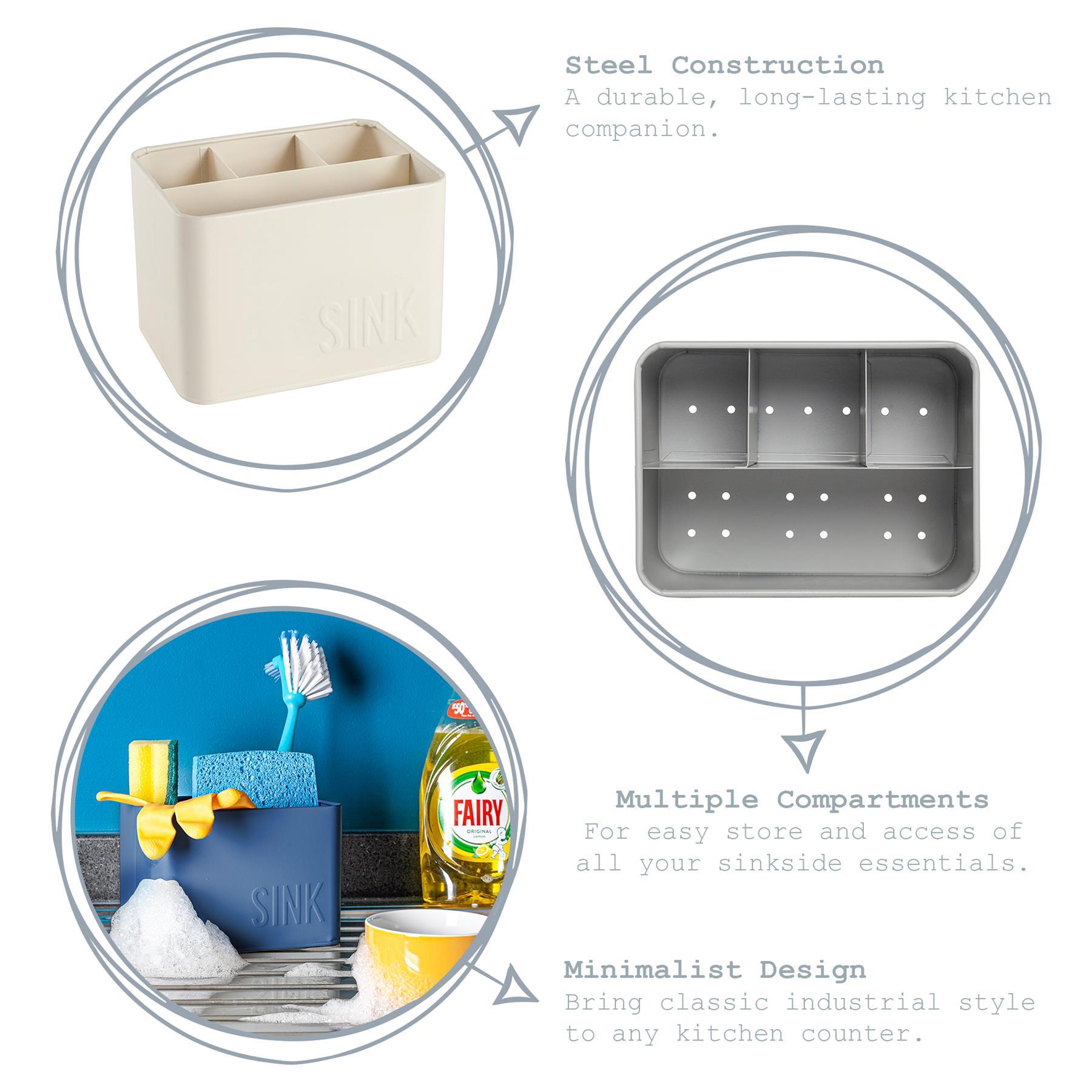 Made from steel, this sink tidy has 4 compartments, perfect for storing your washing liquid, sponges, cloths or soaps. The minimalistic design complements many styles of kitchen décor making it a perfect housewarming present as well as a nice gift to yourself!