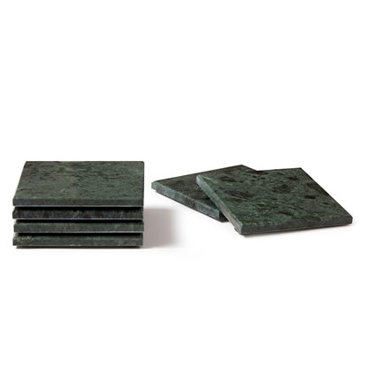 12pc Round Marble Placemats & Square Coasters Set - 30cm - Green