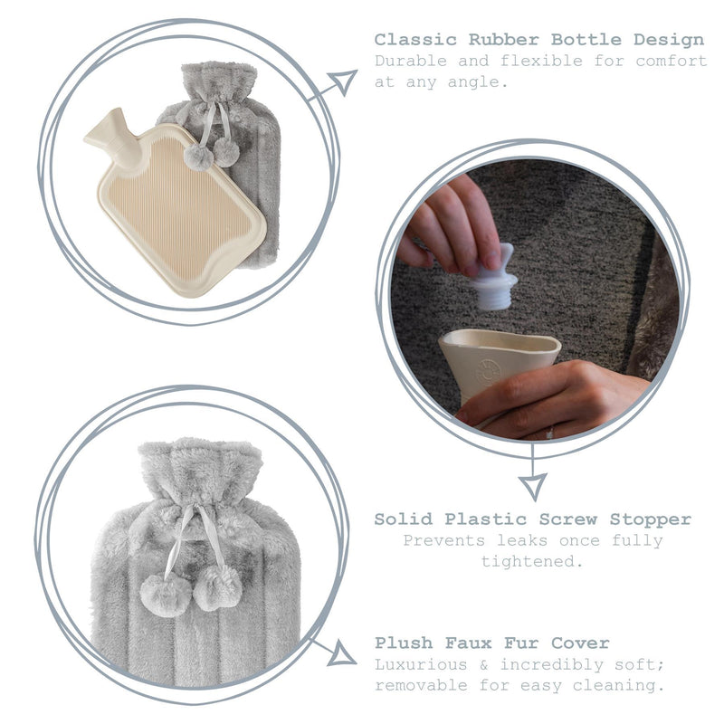 Classically designed from durable rubber, this bottle offers perfect, swift salvation from any winter chills, as well as helping to alleviate aches, pains and cramps in times of need. So far, so scientific - but the rubber hardly screams 'snuggle me.' To fix that, we've dressed this bottle in a sumptuous faux-fur cover with pom poms that will feel every bit as cosy as your favourite winter jumper and filling is made easy thanks to the leakproof solid plastic screw top stopper in the spout.