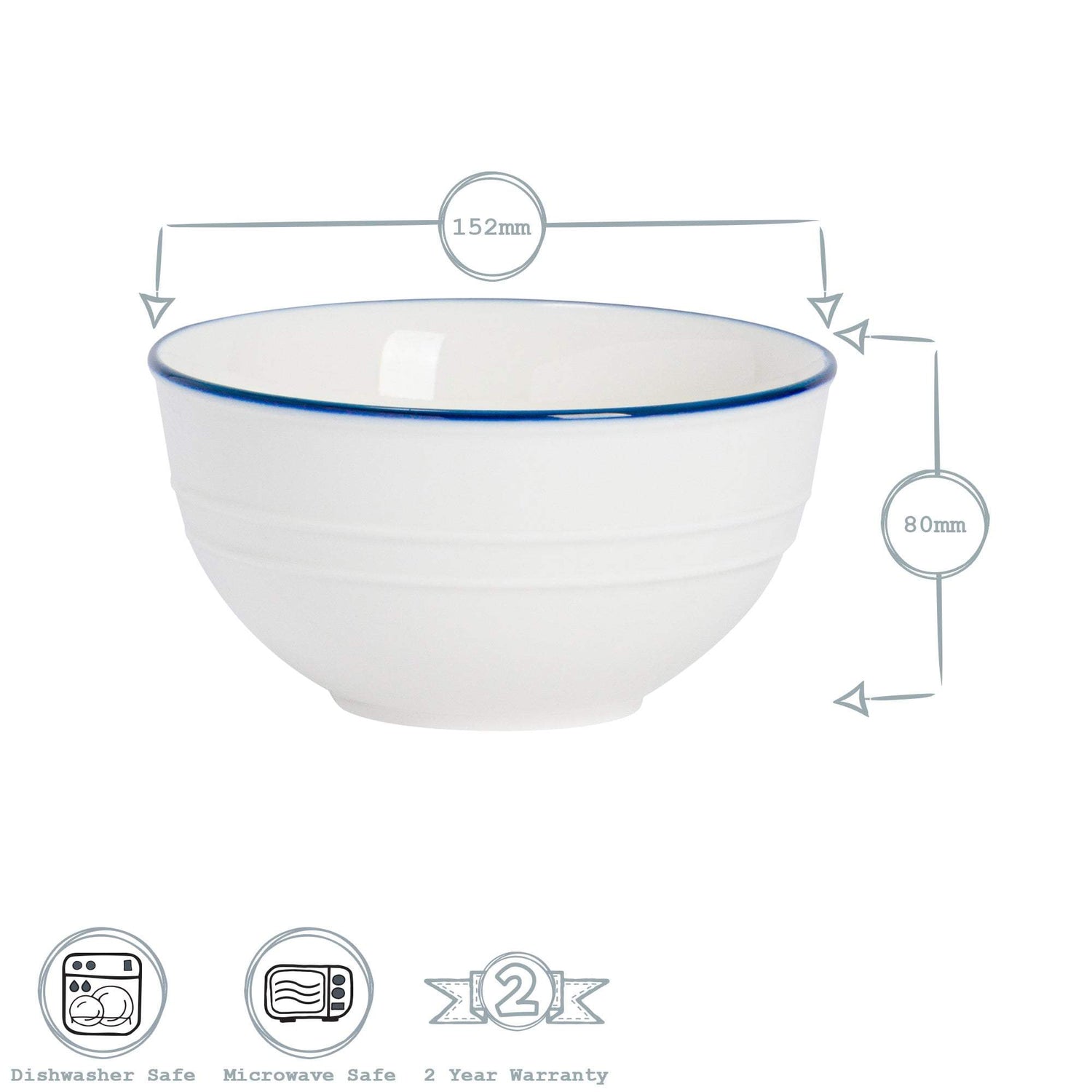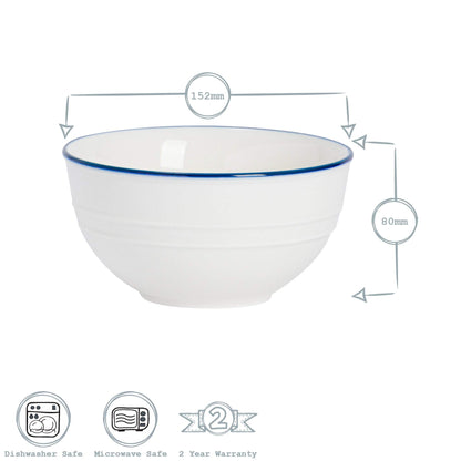Nicola Spring Farmhouse White Cereal Bowls - 15cm - Pack of 6