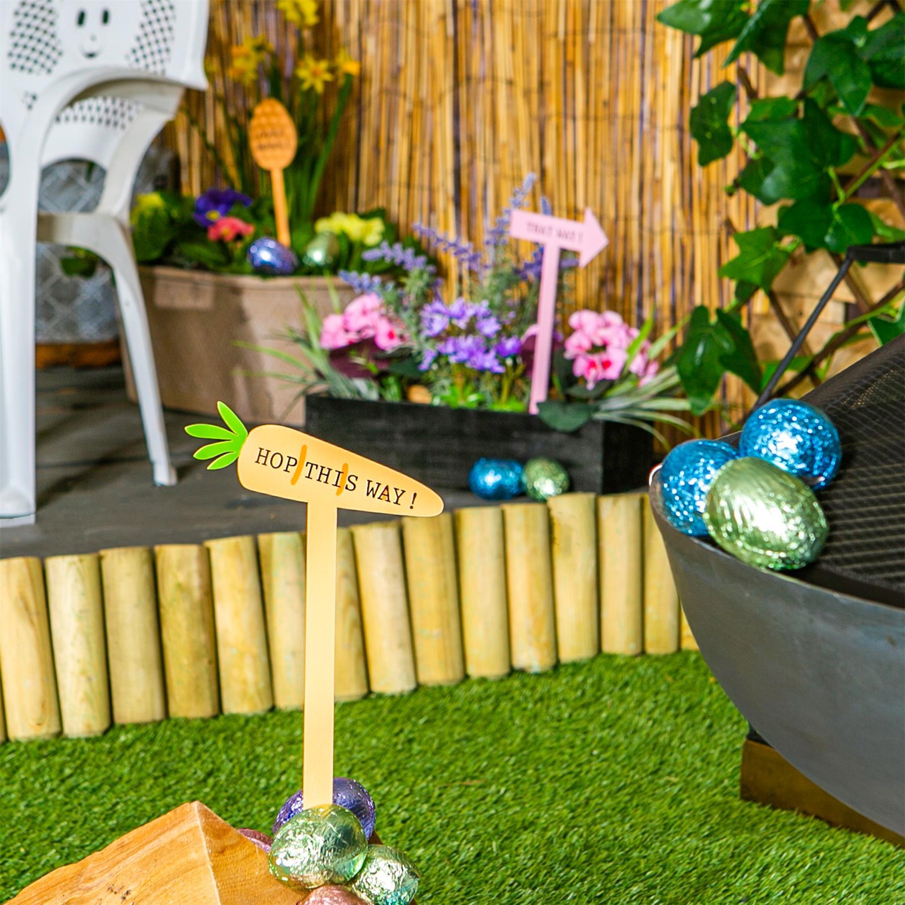 The pointed base of these lightweight wooden posts allows them to be easily staked into lawns, plant pots and flowerbeds, offering limitless possibilities as you guide your intrepid hunters towards the treasure!