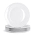 This set of 6 White Wide-Rimmed China Dinner Plates from Argon Tableware brings classic style and minimalist sophistication to any home kitchen dining table or restaurant.