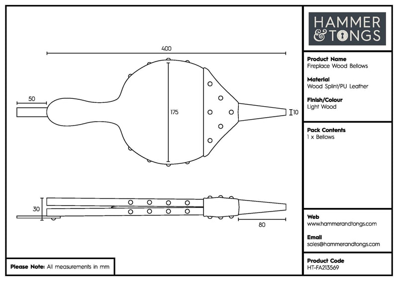 Keep the home fires burning with this set of Fireplace Wood Bellows from Hammer & Tongs.