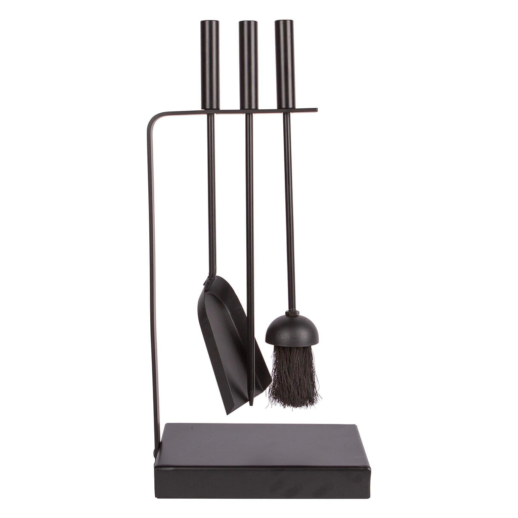 Forged from iron with a sleek black finish, this compact collection of essential tools adds modern, industrial elegance to any interior.