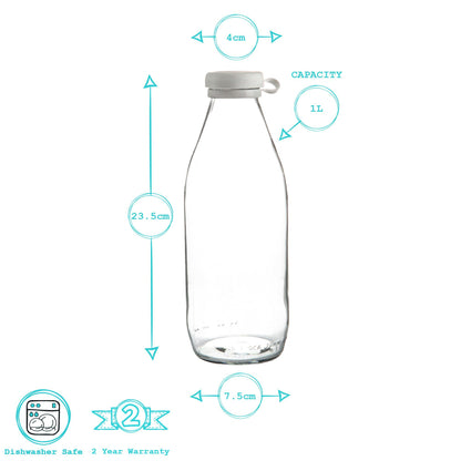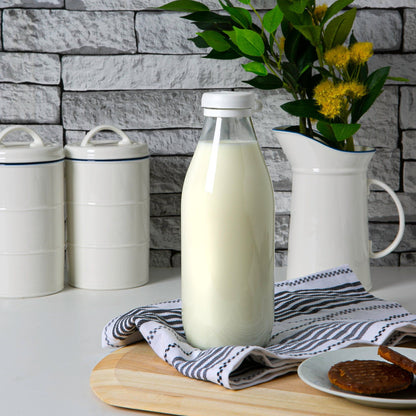 Argon Tableware Glass Milk Bottle with Silicone Lid - 1 Litre