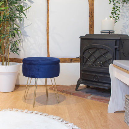A layer of foam padding neatly encompasses the stools, ensuring lasting comfort, whilst the soft velvet covering creates the ultimate level of luxury. The metal hairpin legs, meanwhile, protect surfaces from scuffs and scratches whilst further accentuating the stool's elegant, stylish aesthetic.