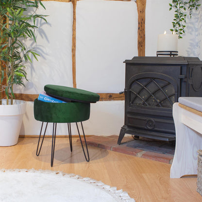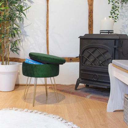 Green Round Velvet Storage Footstool