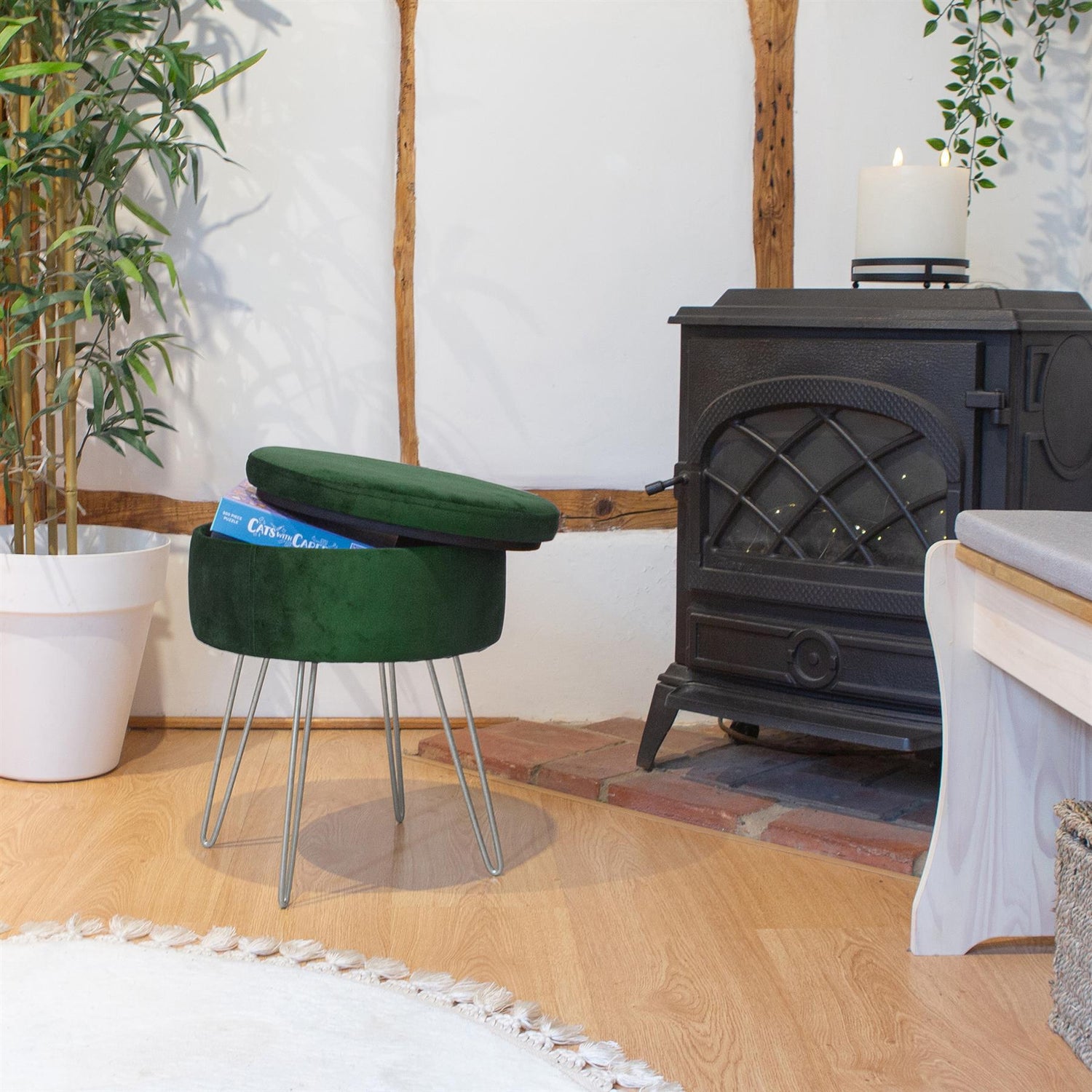 Constructed from high-quality wood, these stools possess the perfect combination of lightness and stability, while the matching removable lid reveals a handy storage space for gloves, scarves, television remotes or any other of life's little essentials.