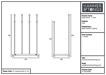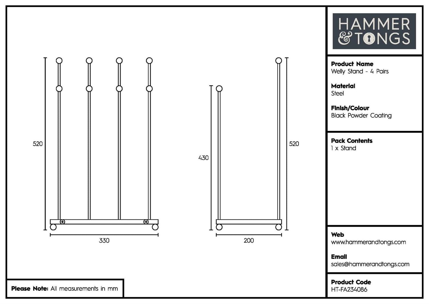 Keep your home hallways clean and your hardiest footwear neat and organised with this Wellington Boot Rack from Hammer & Tongs.