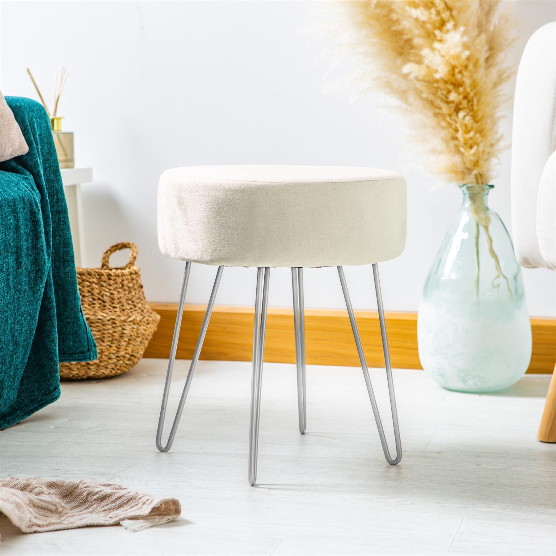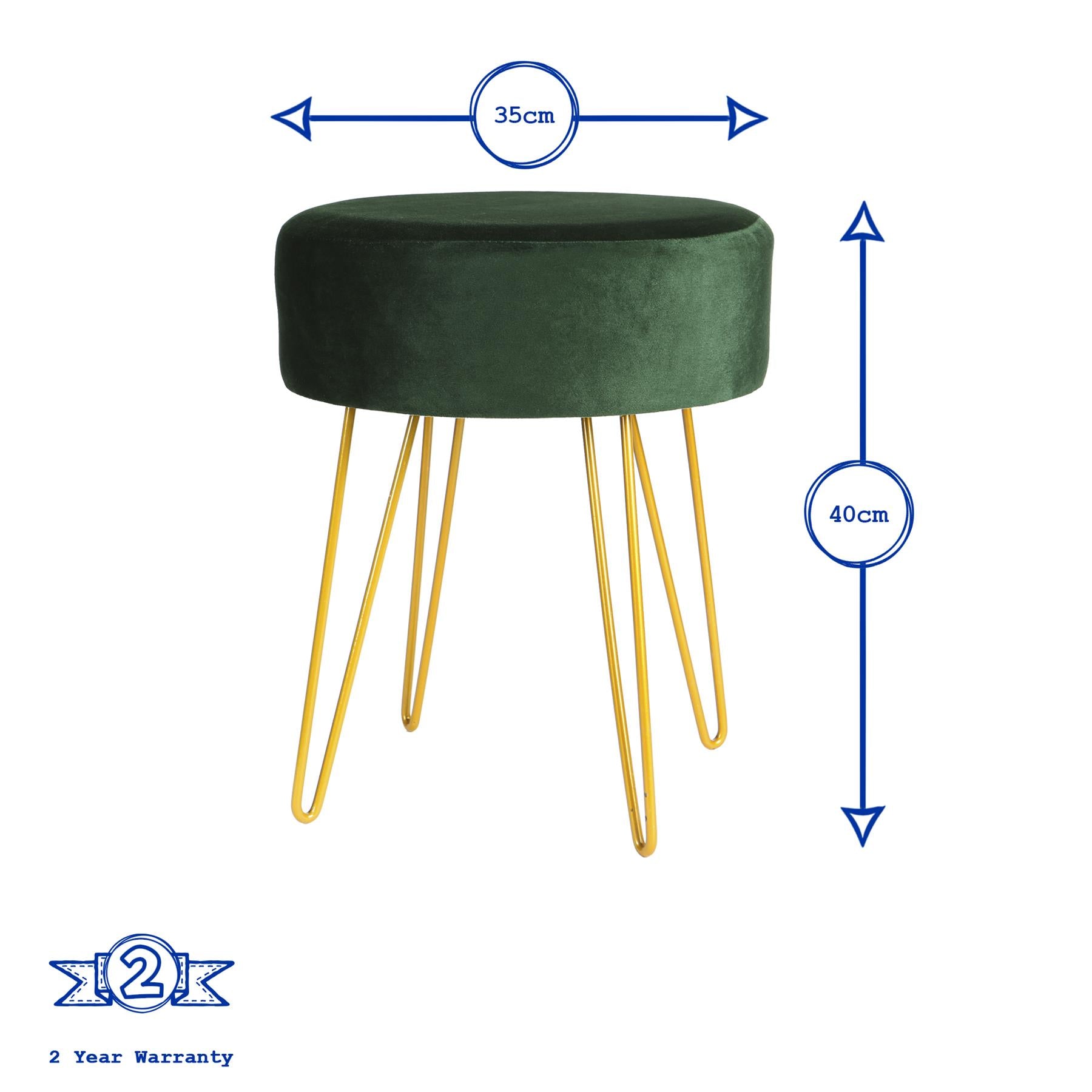 A layer of foam padding neatly encompasses the stools, ensuring lasting comfort, whilst the soft velvet covering creates the ultimate level of luxury. The metal hairpin legs, meanwhile, protect surfaces from scuffs and scratches whilst further accentuating the stool's elegant, stylish aesthetic.