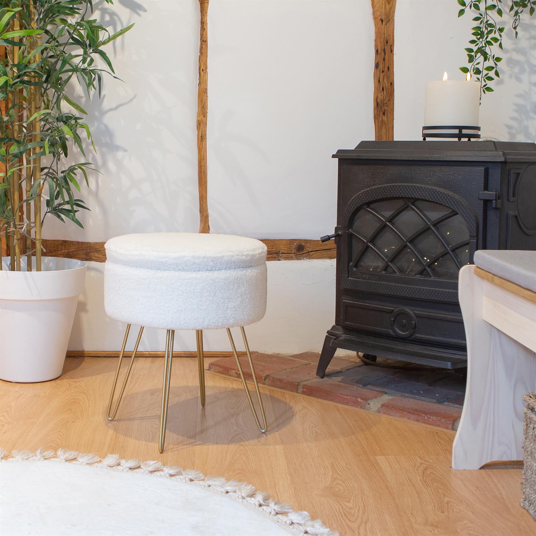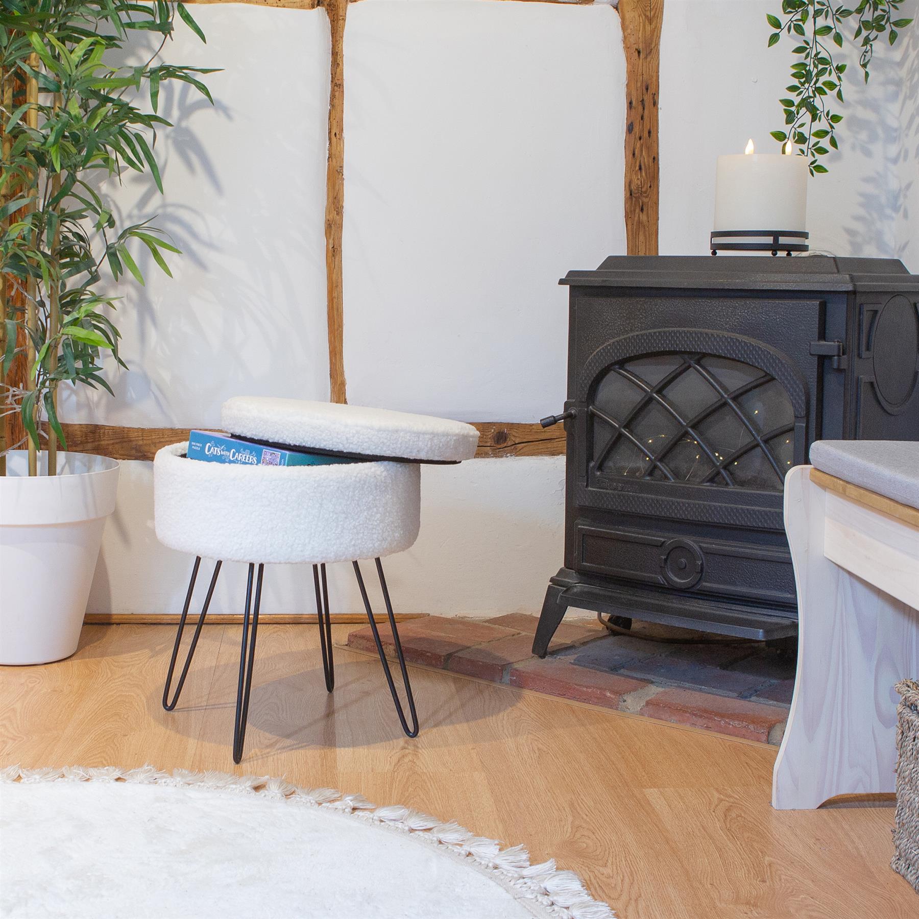This Boucle Storage Footstool from Harbour Housewares offers great additional seating to any lounge, bedroom or study, whilst also serving as a beautifully decorative piece to add to your interior.