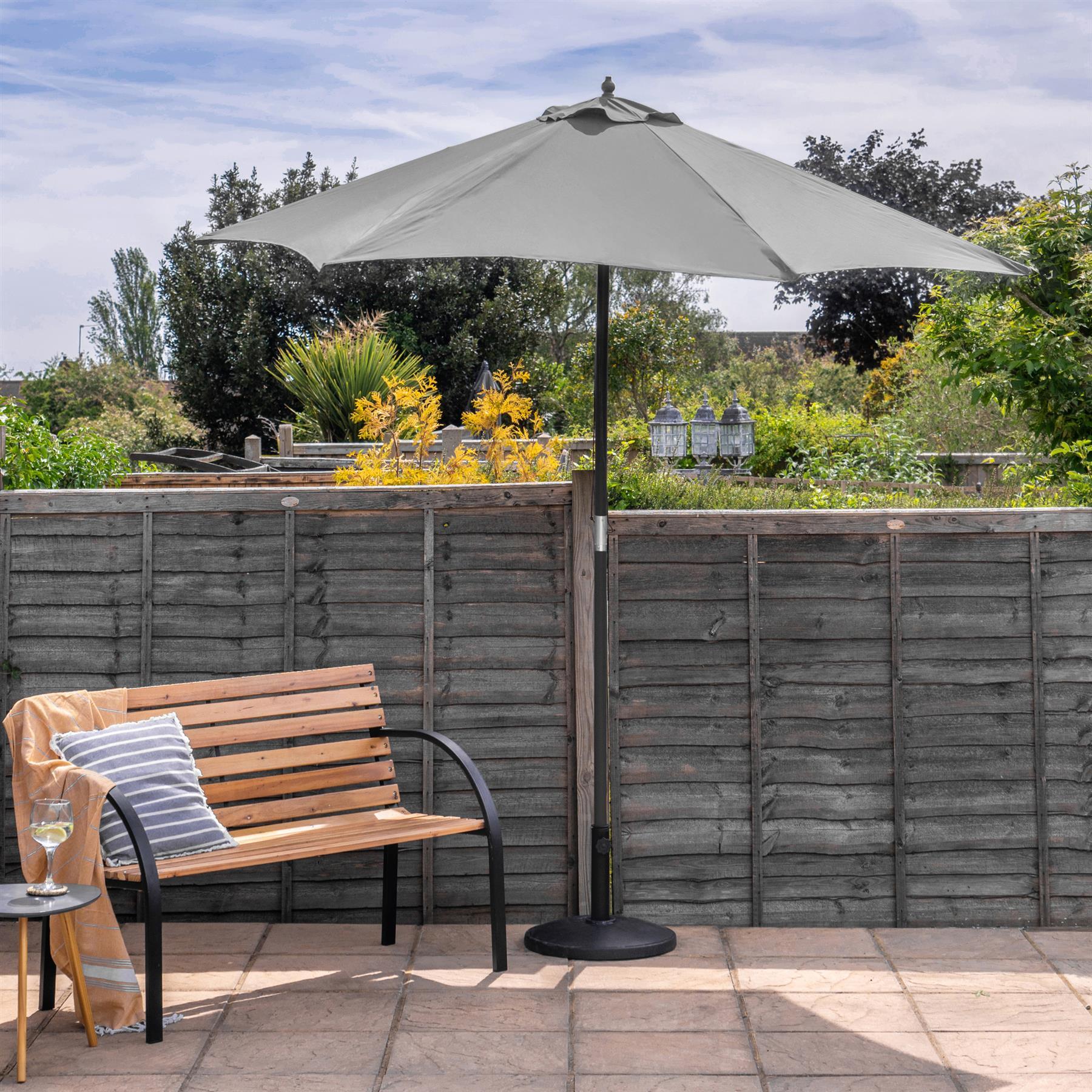 Each parasol in our collection consists of a polyester canvas stretched over a two-piece hard wood frame. A pulley system allows you to quickly and conveniently open your parasol to nearly 3m in diameter, with a metal locking pin allowing you to choose between three open positions to suit your space and need. The canvas is water-repellent, ensuring you and your guests will still enjoy a layer of protection should the weather turn.