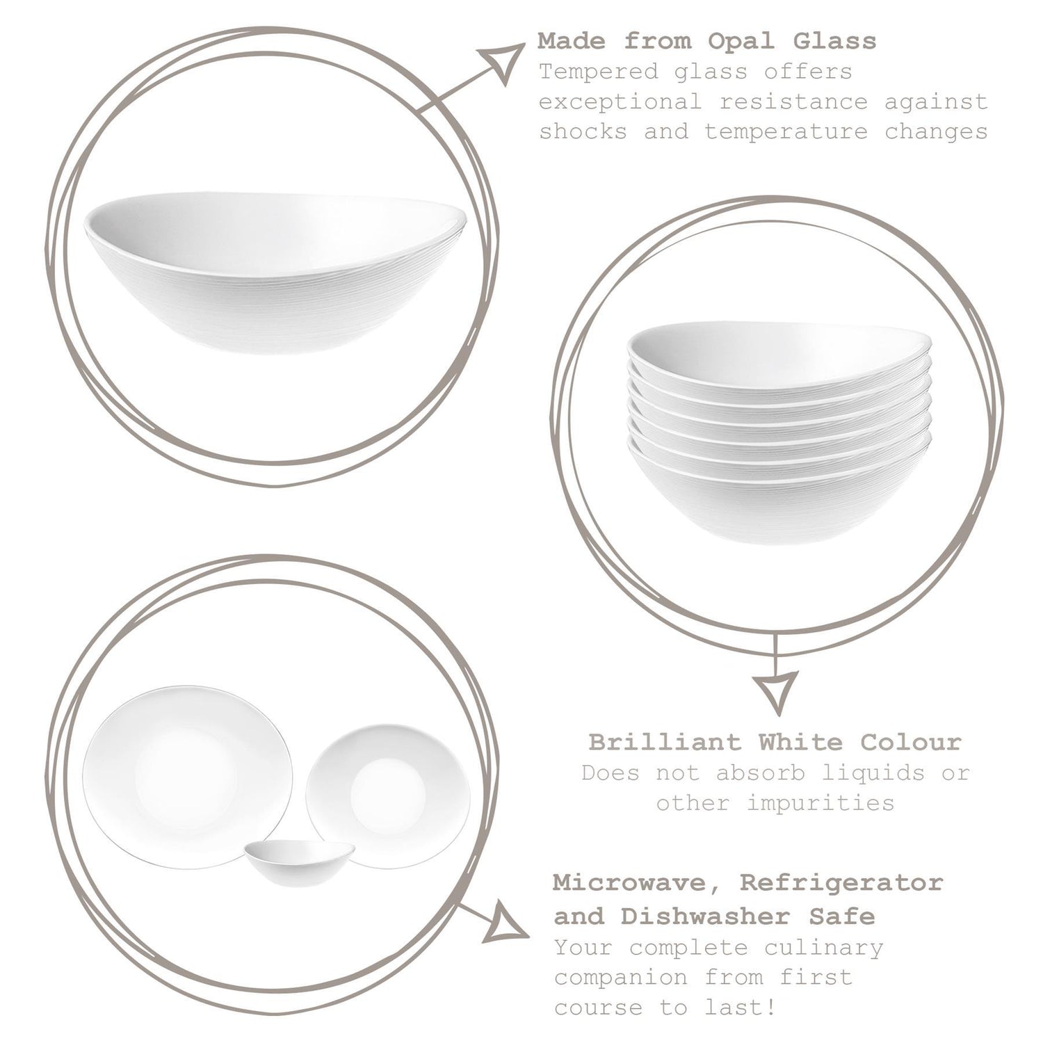 Microwave, Refrigerator and Dishwasher Safe - Your complete culinary companion from first course to last!