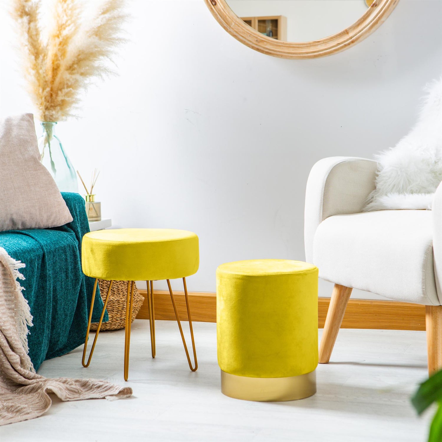 This Round Velvet Footstool from Harbour Housewares offers great additional seating to any lounge, bedroom or study, whilst also serving as a beautiful decorative piece to add to your interior.