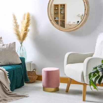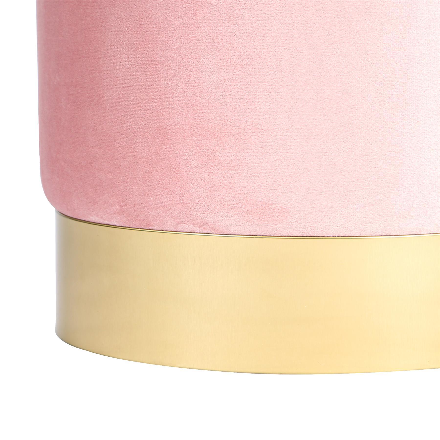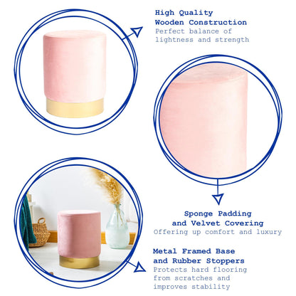 A layer of foam padding covers the stool, ensuring lasting comfort and the soft velvet covering creates the ultimate level of luxury. The petite shape makes this stool ideal for tucking under a desk or vanity table, creating a convenient space-saver.