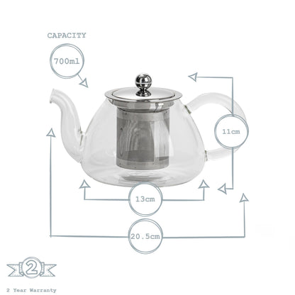 700ml Clear Glass Teapot with Stainless Steel Infuser