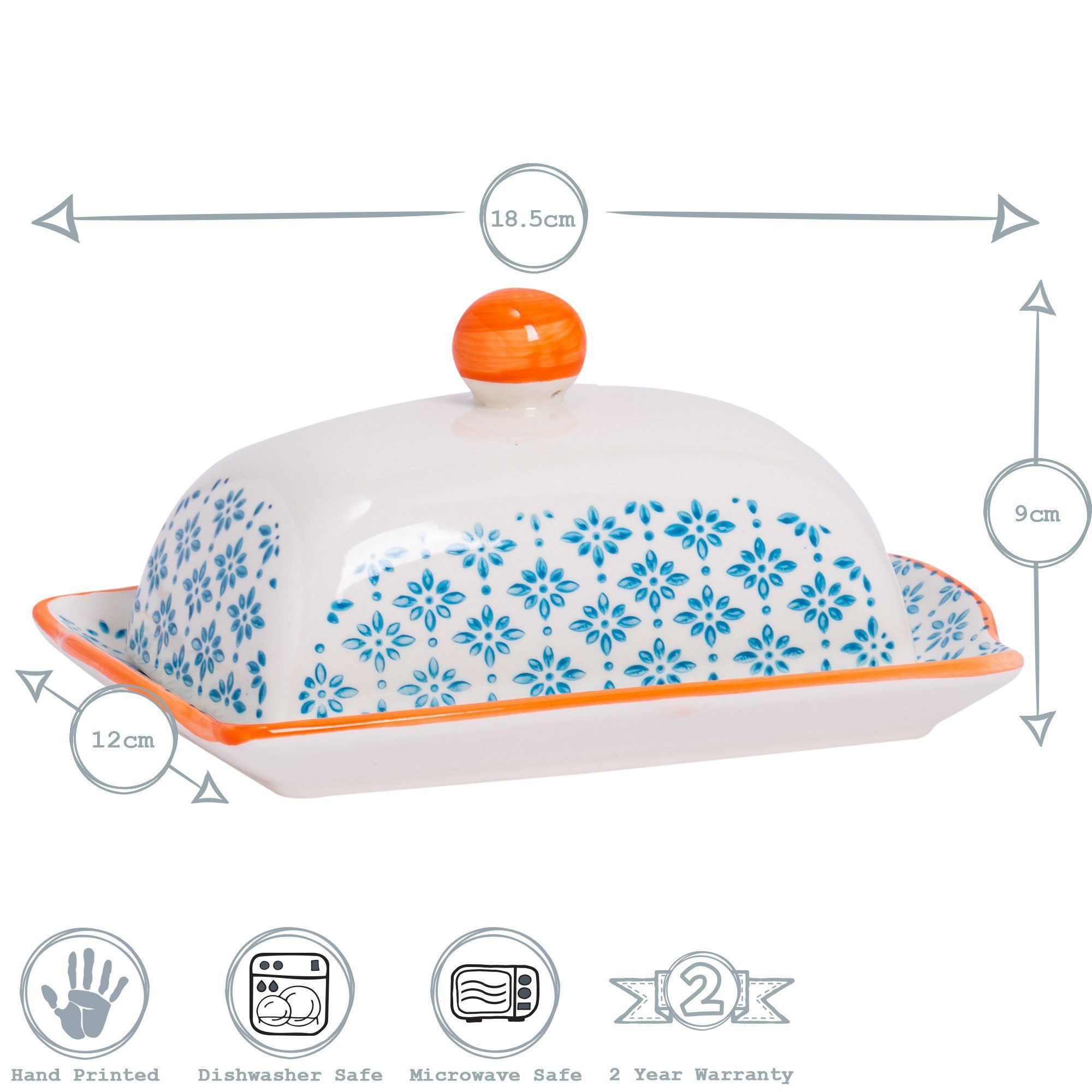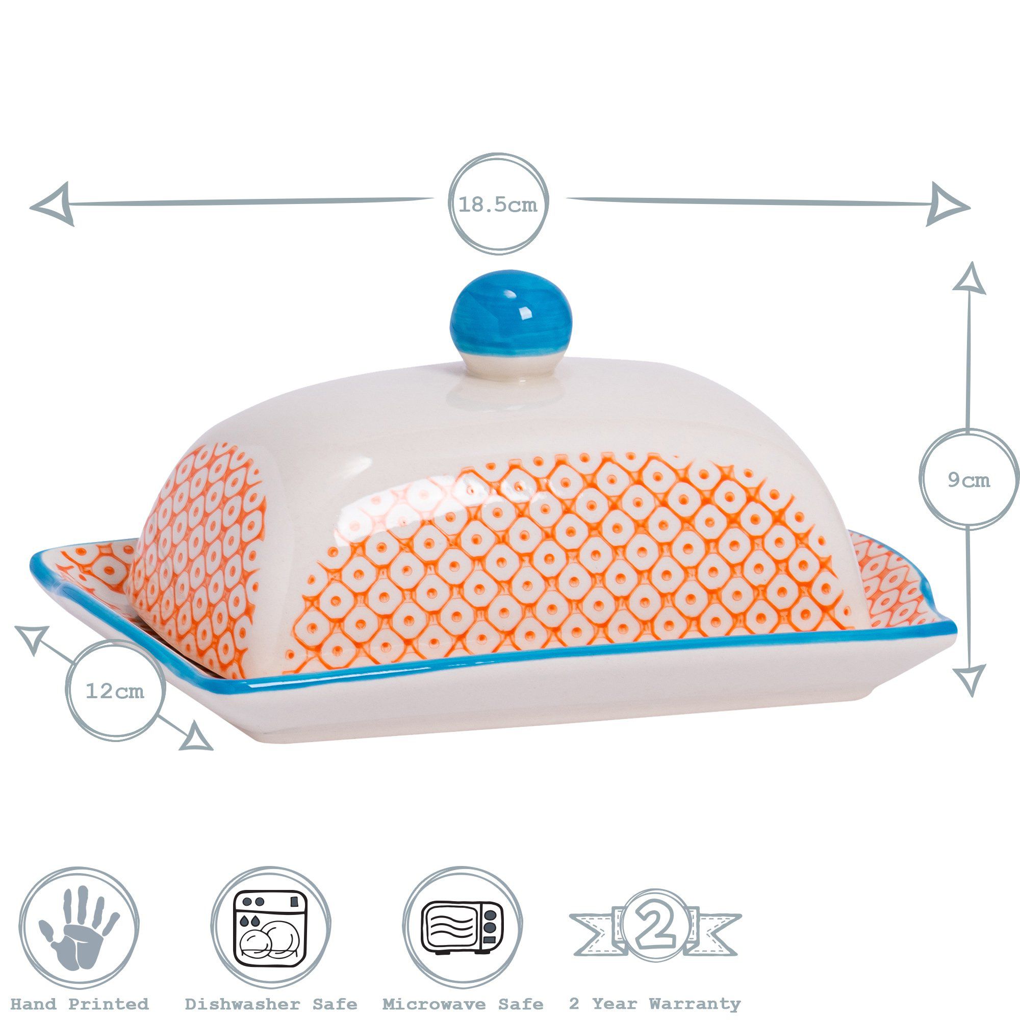 The range of Hand Printed Patterned Stoneware Butter Dishes from Nicola Spring is a great way to spread some vibrant colour and charming vintage style across your kitchen and tableware crockery collection.