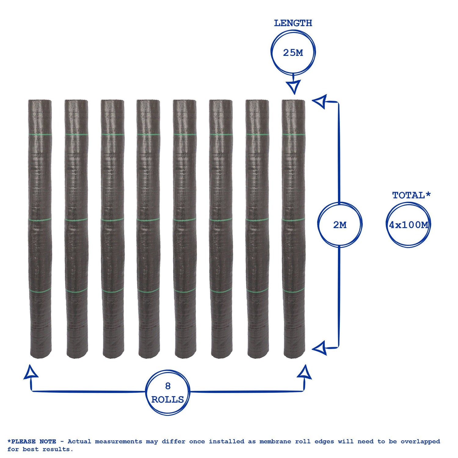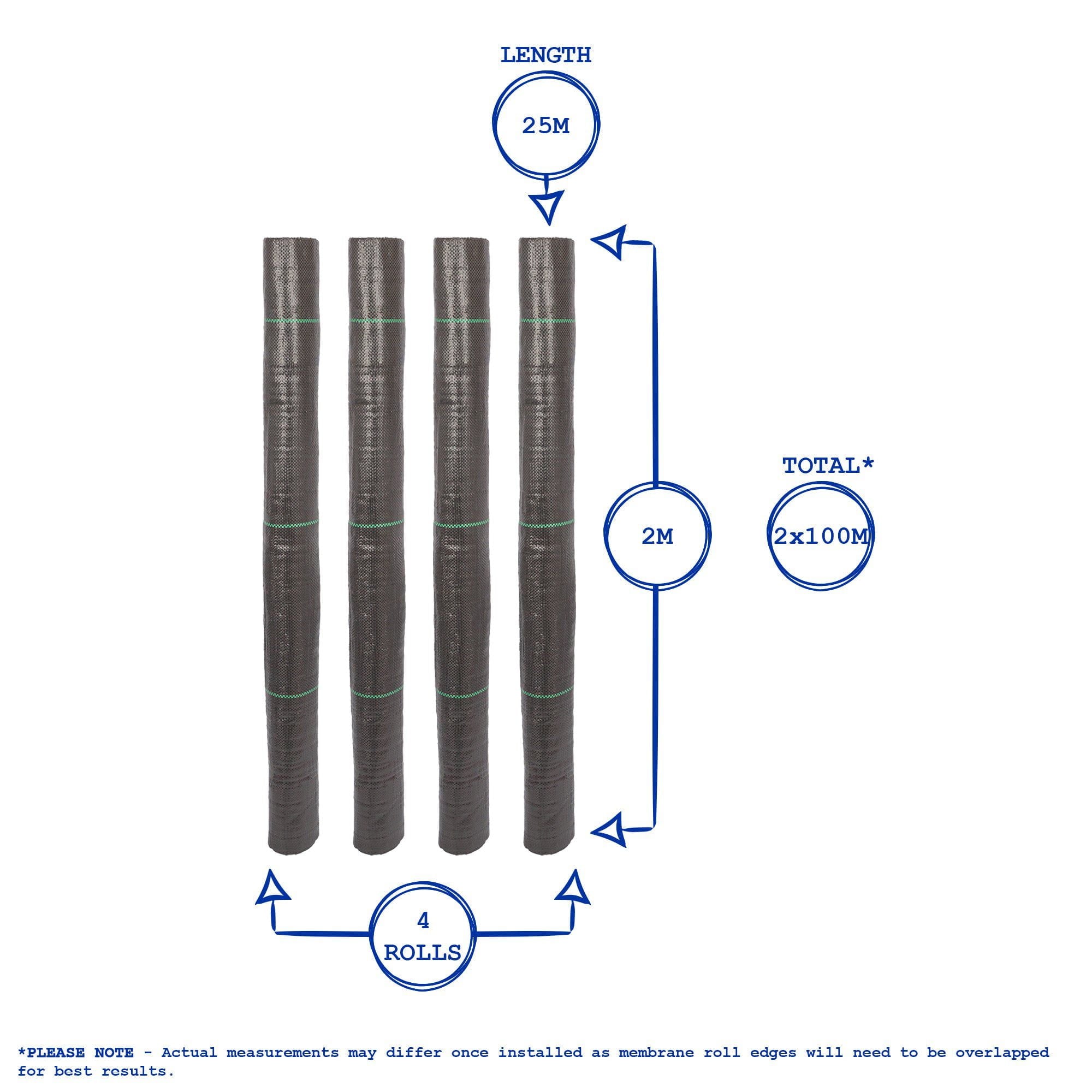 These rolls offer ample surface area for a wide array of outdoor applications, and can be easily secured in place with the included Weed Membrane Fixing Pegs & Plates for maximum performance.