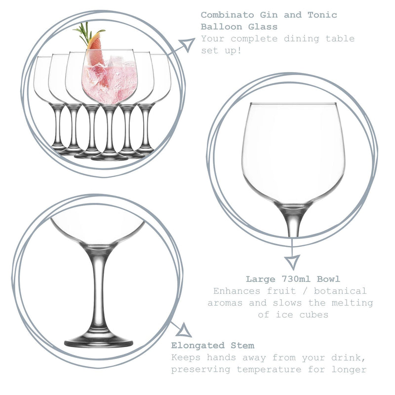LAV 6 Piece Combinato Gin and Tonic Balloon Glasses Set - 730ml