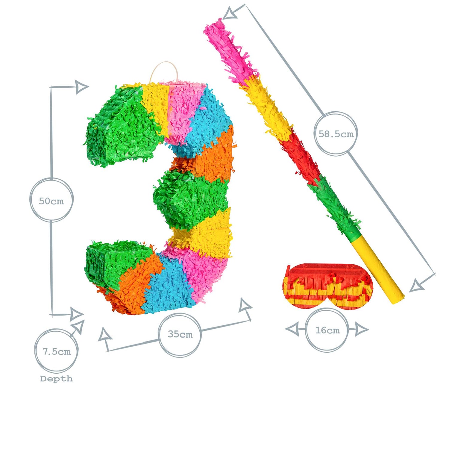 Large Number 3 Pinata Party Set