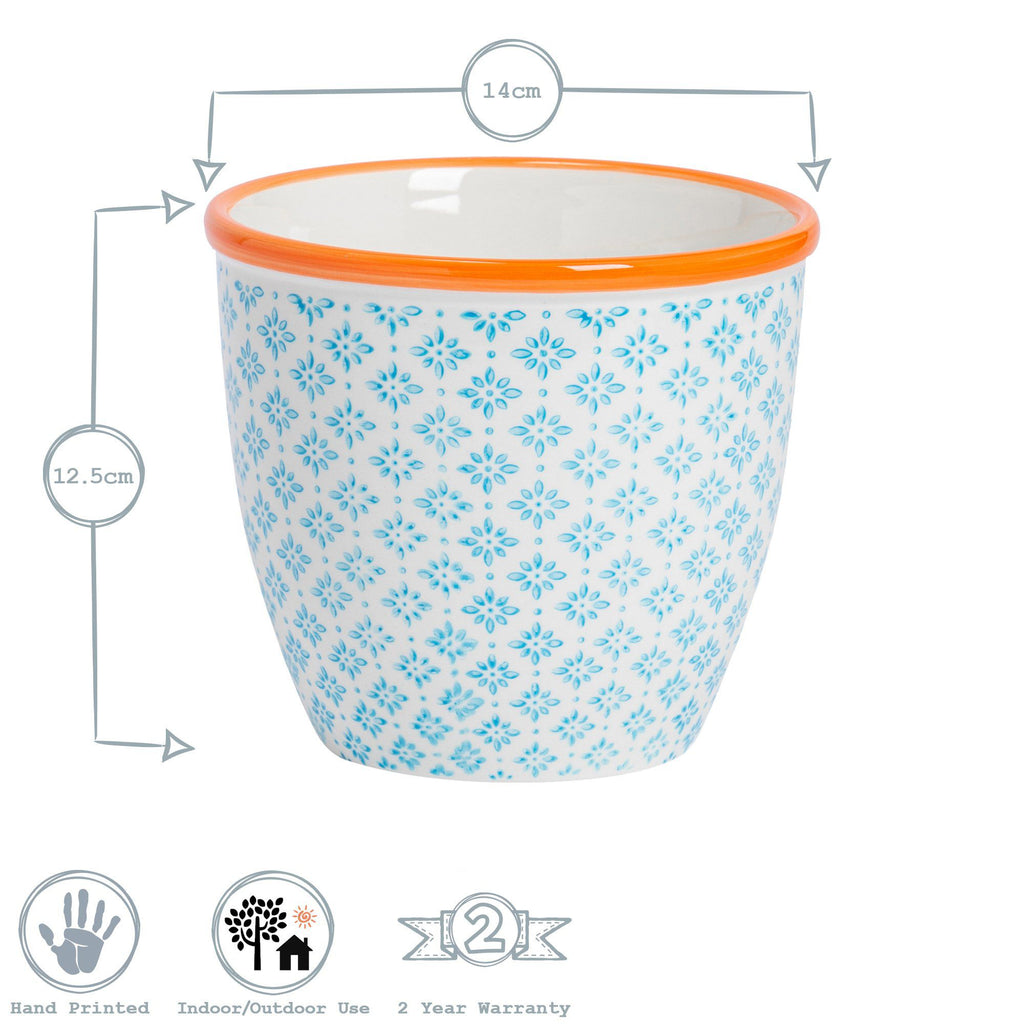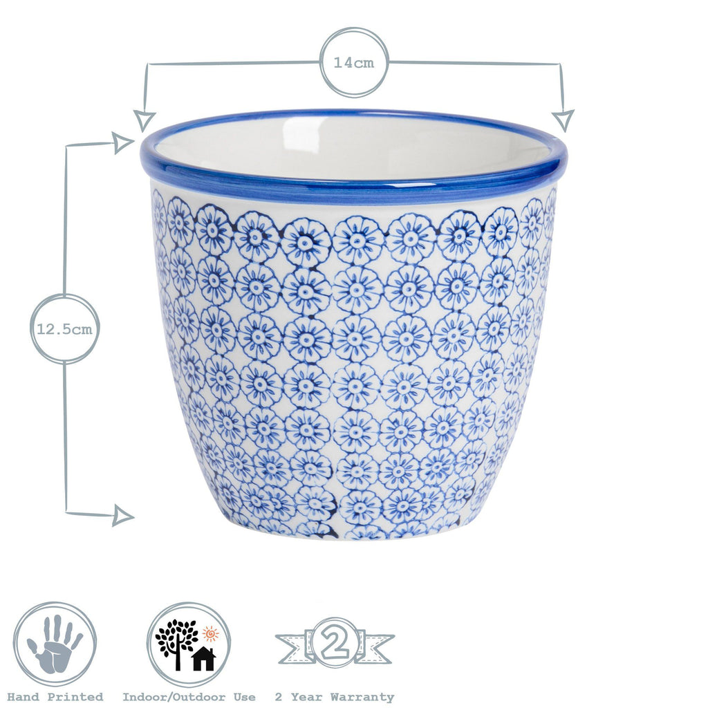 Crafted from durable stoneware, these hand printed plant pots are ideally suited to use both indoors and outdoors, with a 13.8cm (5.5") available to suit a wide array of plants, flowers and other foliage.