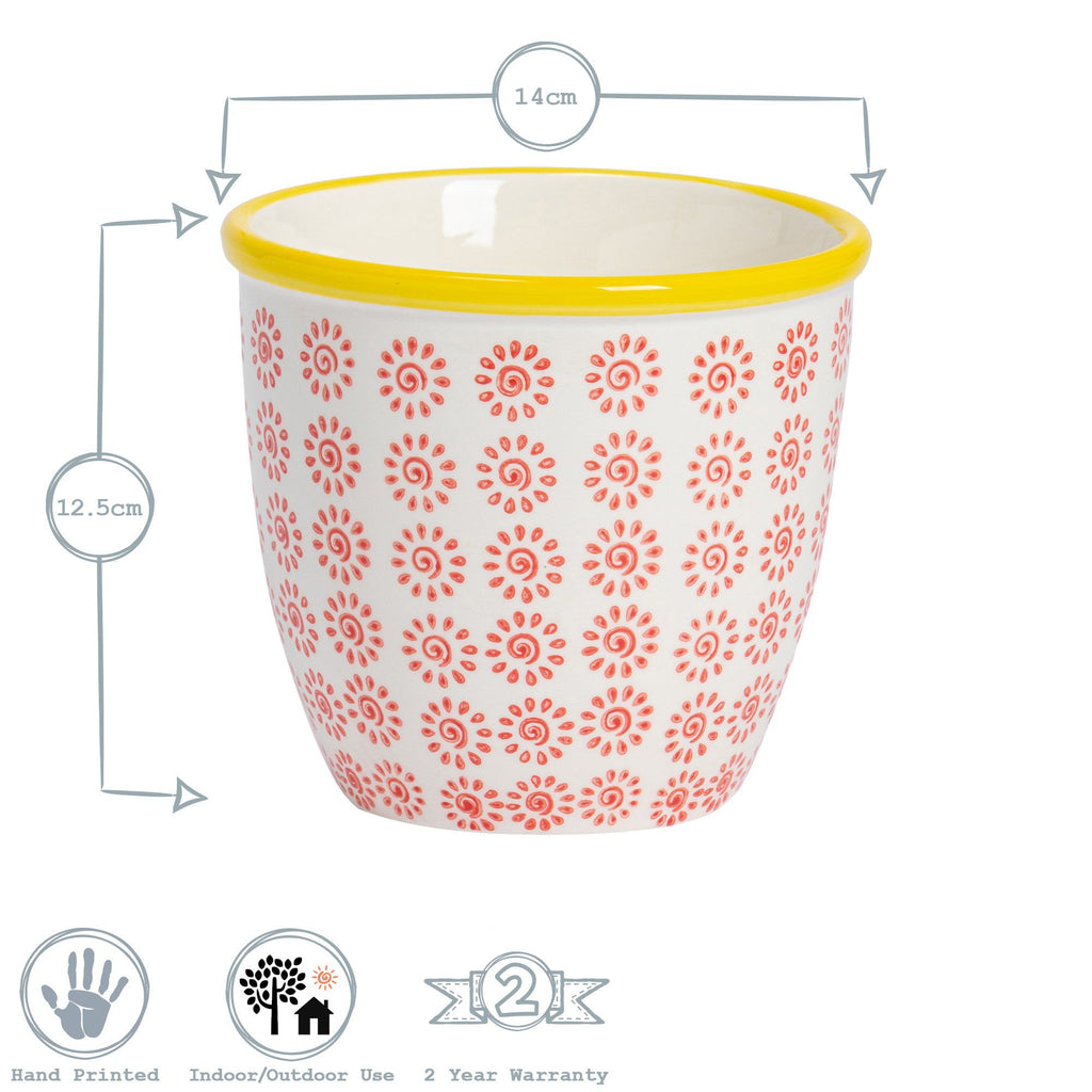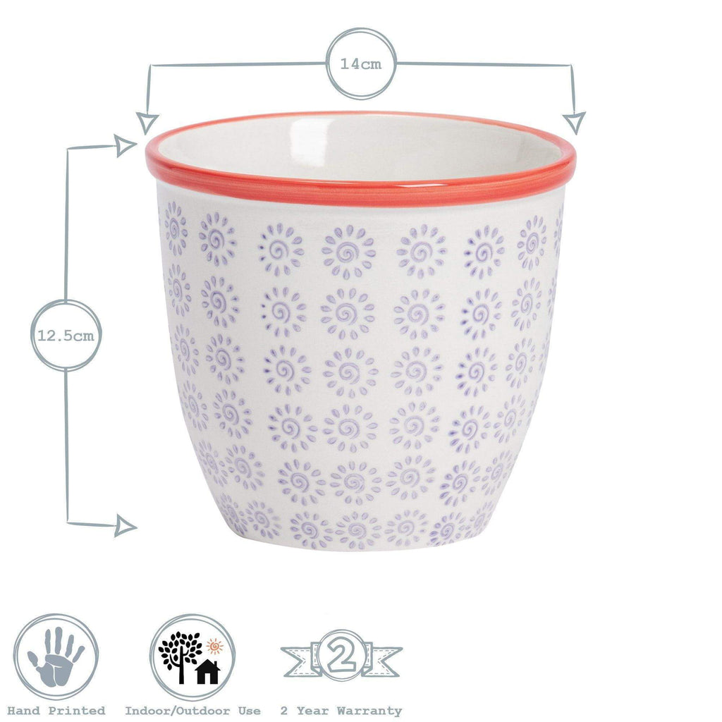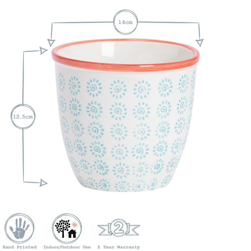 14cm Hand Printed Stoneware Plant Pot