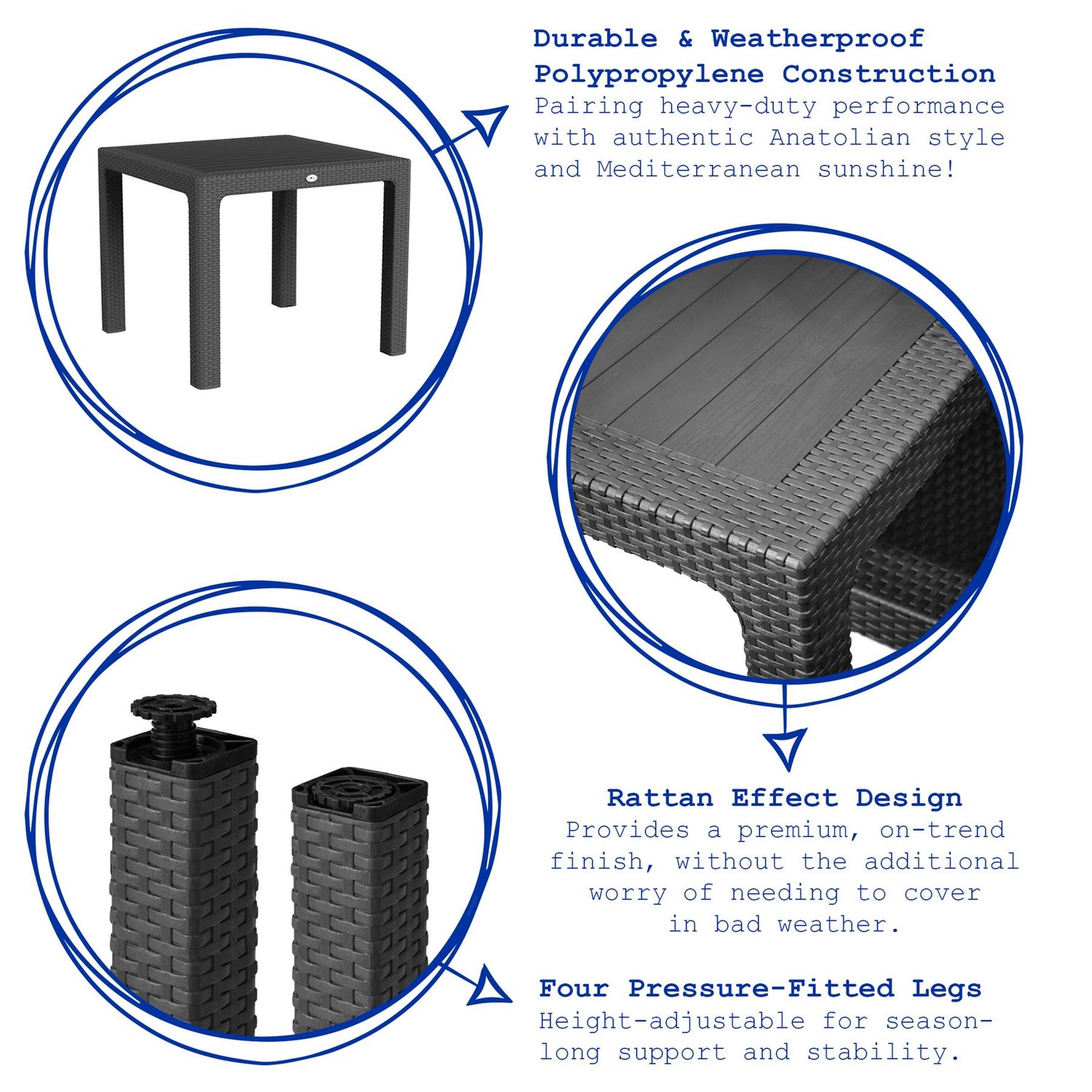 Durable & Weatherproof Polypropylene Construction - Pairing heavy-duty performance with authentic Anatolian style and Mediterranean sunshine!