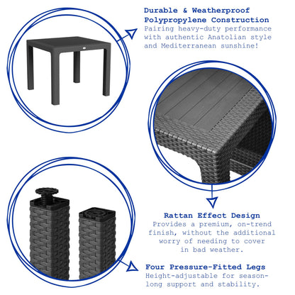 Noble Square Rattan Effect Garden Dining Table - 90cm x 90cm - Anthracite