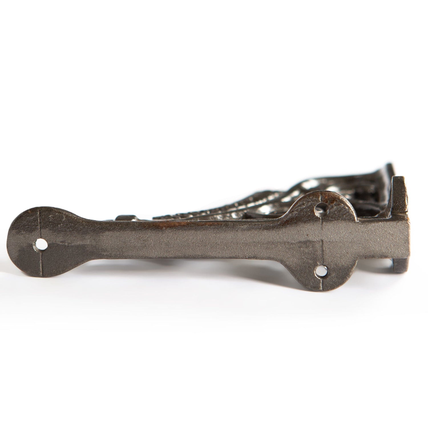 Forged from iron with a rustic raw finish, this bracket can be easily affixed to all manner of shelving and storage surfaces, allowing you to showcase picture frames, potted plants, kitchenware, tools and more in style.
