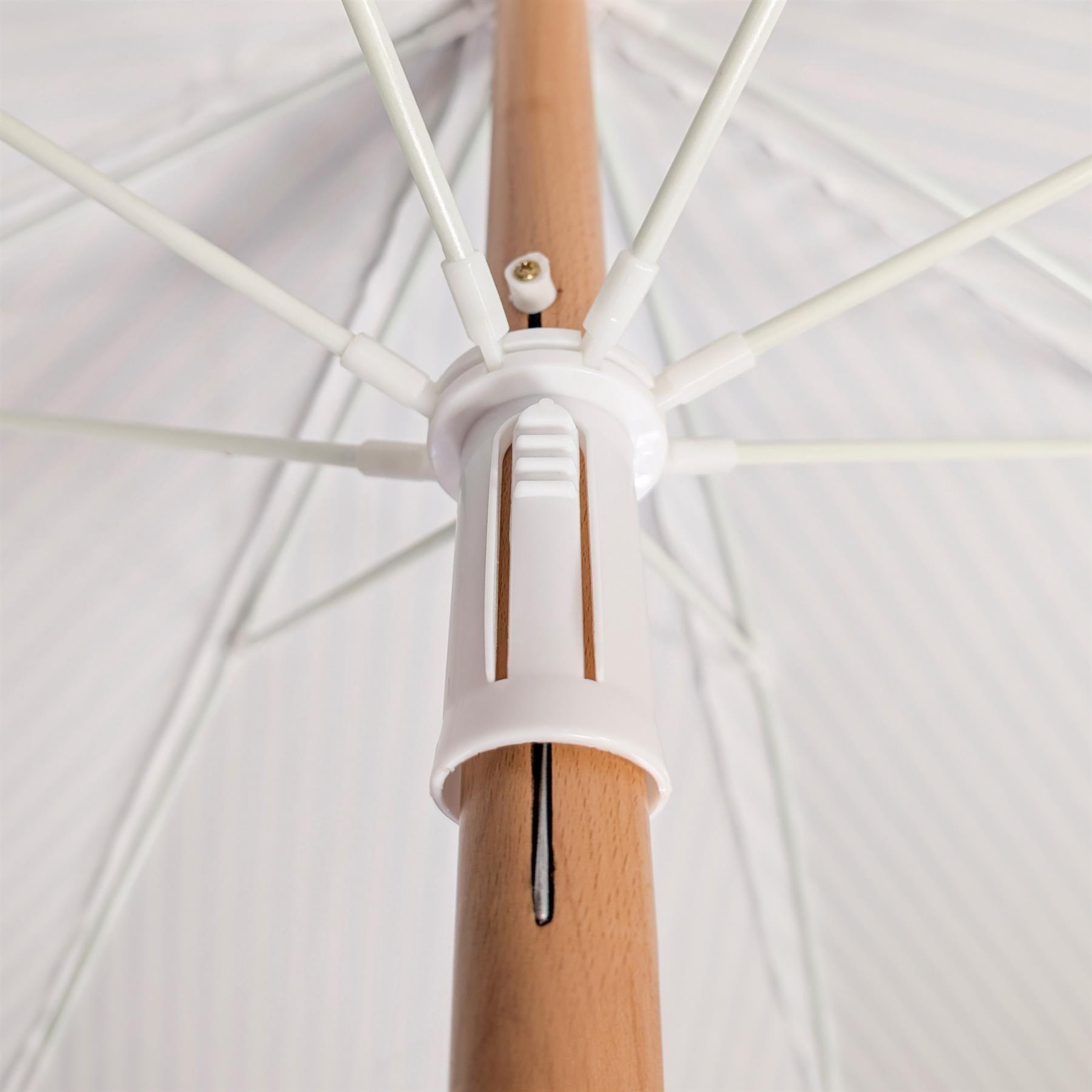 The classic striped polyester canvas offers excellent protection from anything the famous Great British Summer weather might bring, with a water-resistant finish and UPF30+ protection against UV radiation.