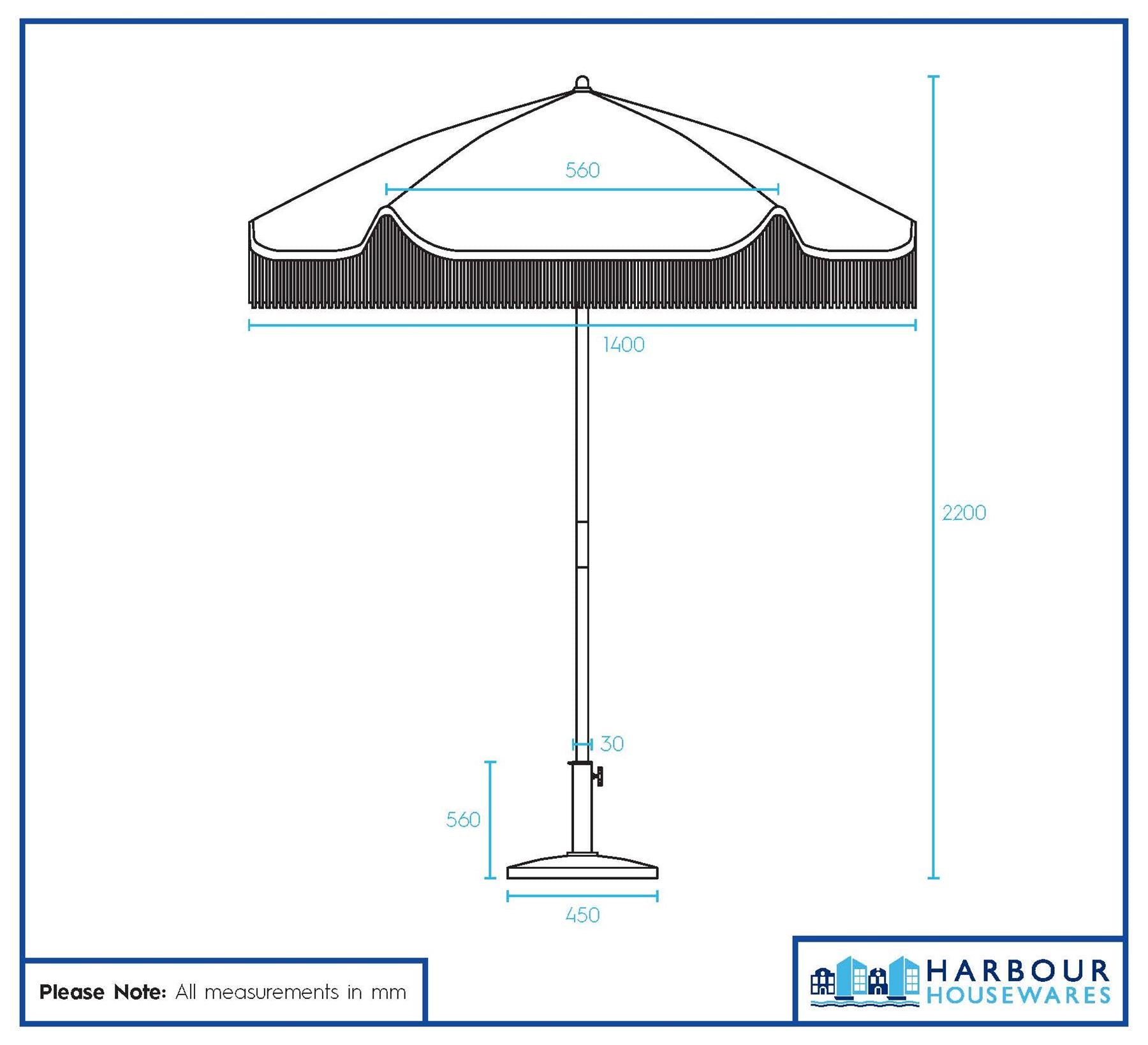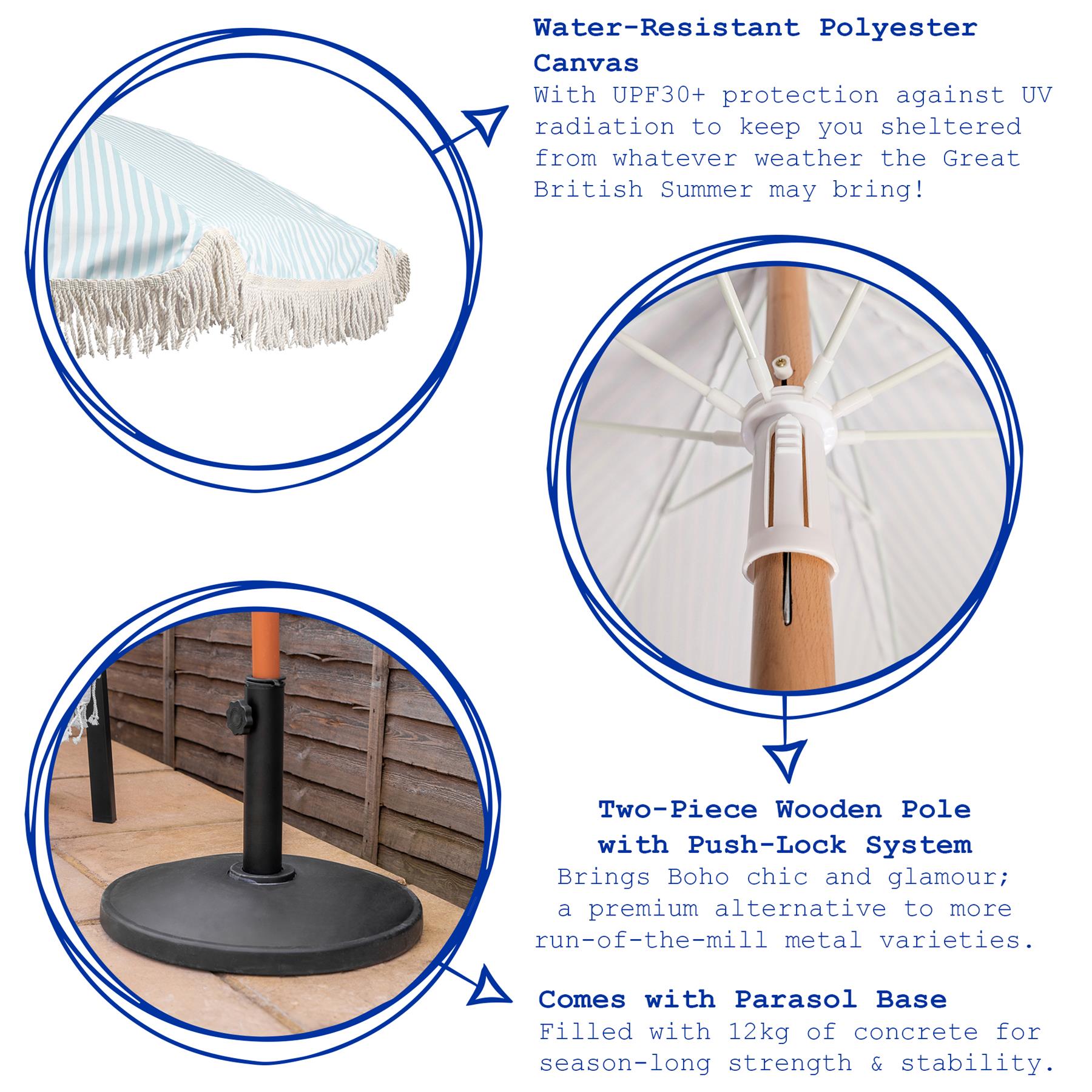 1.4M Tassel Fringed Wooden Garden Parasol & Base Set