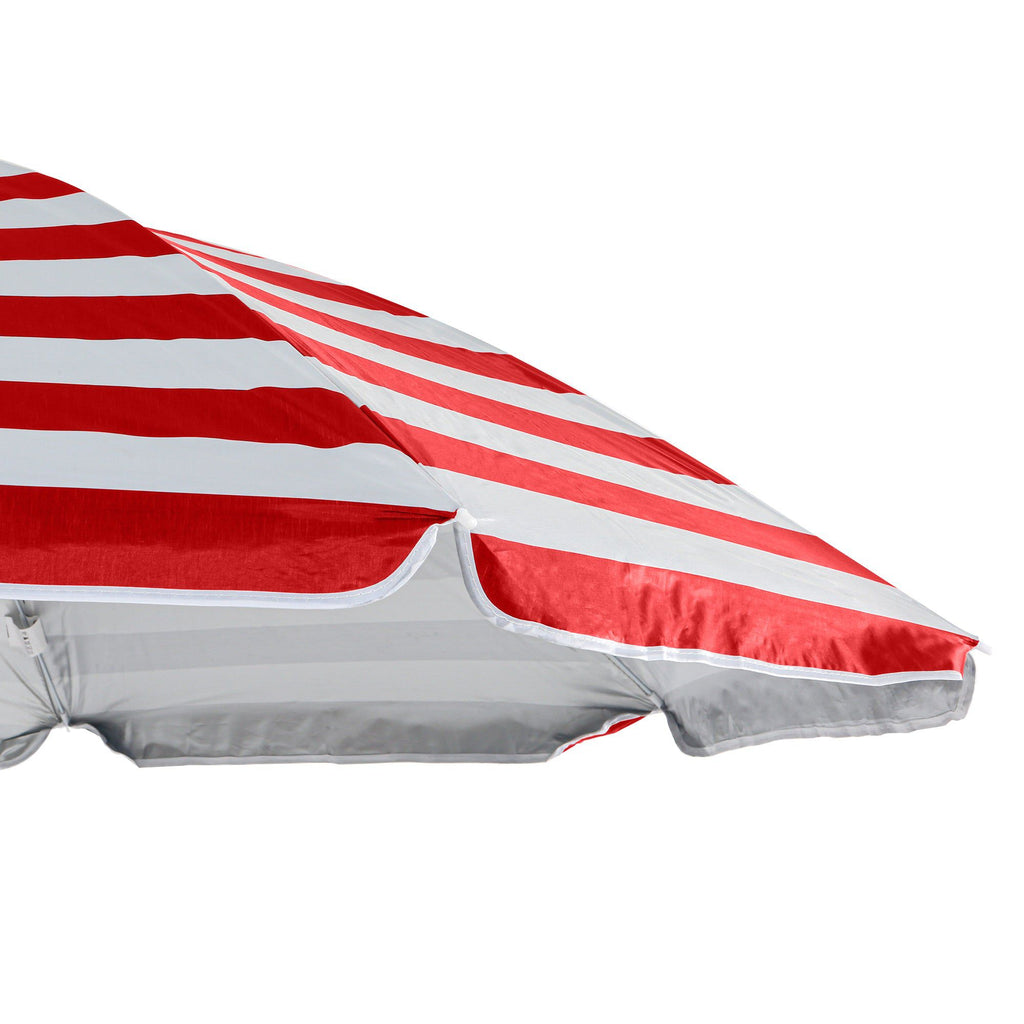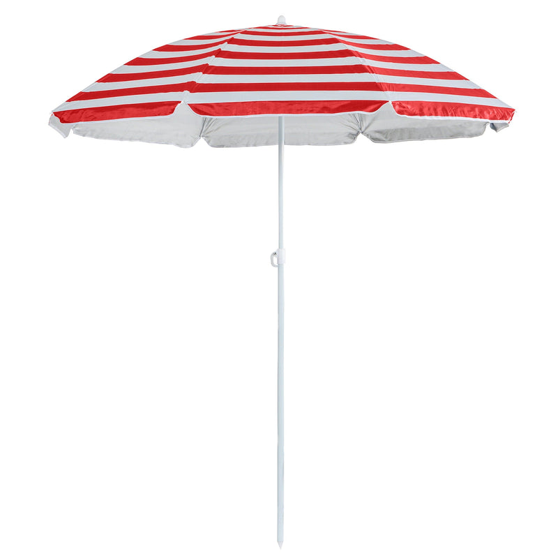 This lightweight Parasol consists of a polyester canvas, with a UV coating and a steel powder-coated frame and pole, producing an incredibly robust and durable product which was made to protect against the harmful rays of the sun and contend with the rigours of the outdoor elements. Simply push the red button, extend the pole, then click into place and you have a parasol ready to keep you cool, calm and collected!