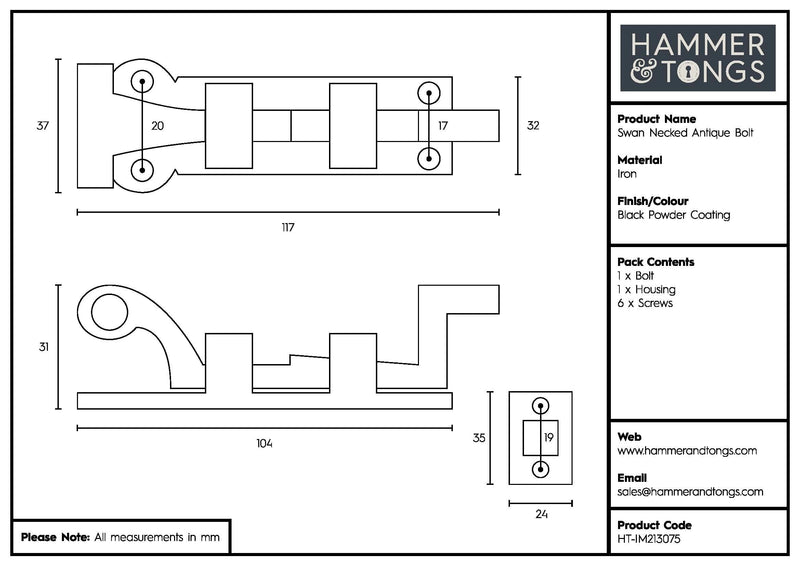 Forged from iron with a classic powder-coated finish, this beautiful bolt will imbue any environment with an air of rustic country cottage charm and character, providing the perfect amount of privacy for bathrooms, bedrooms and more.
