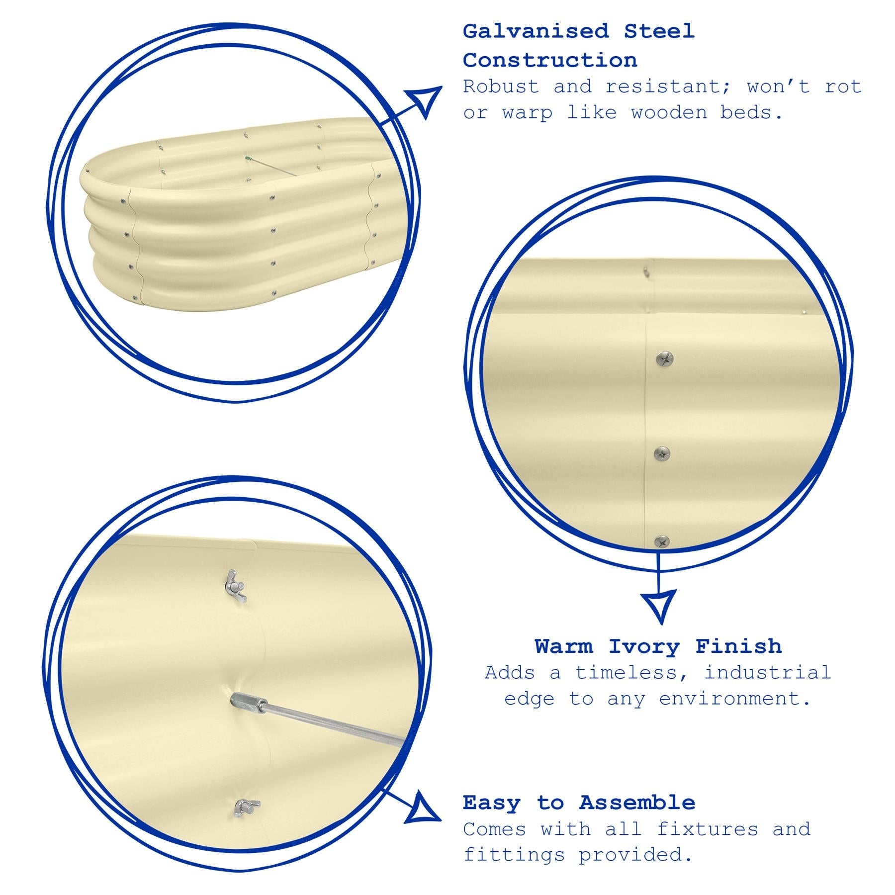 Galvanised Steel Construction - Robust and resistant; won't rot or warp like wooden beds
