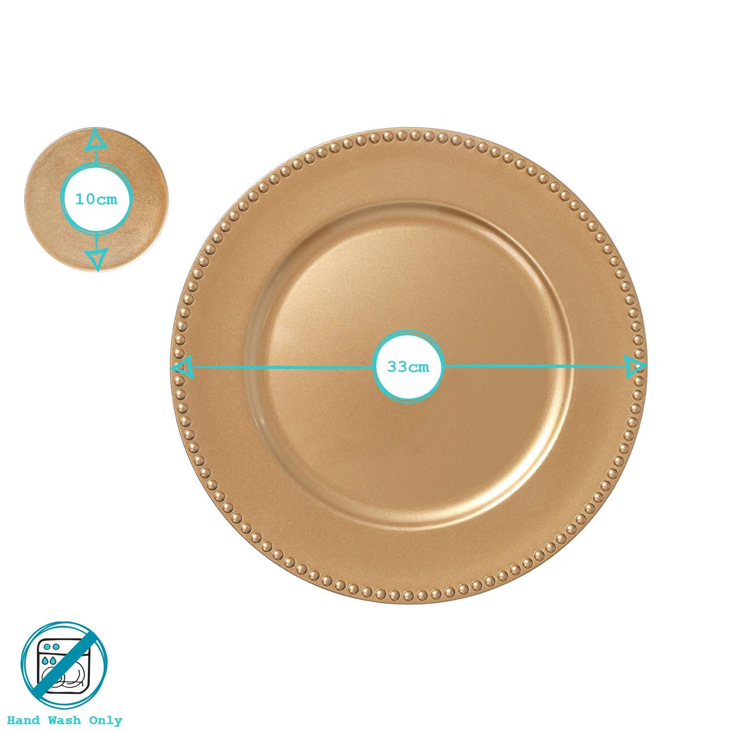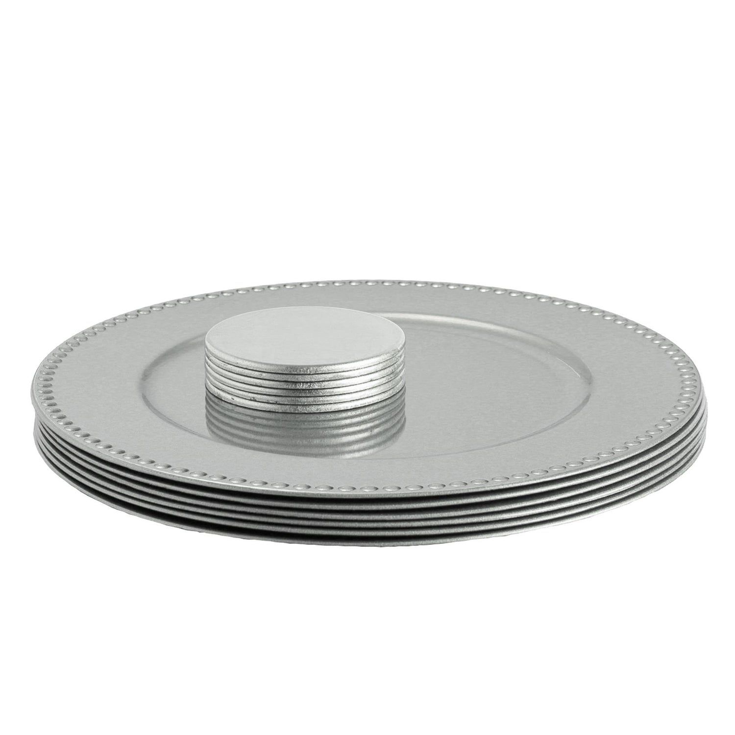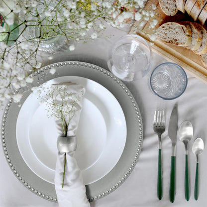 12pc Round Beaded Charger Plates Set - 33cm