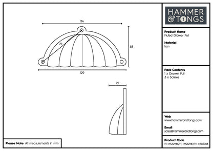 Give your drawers and dressers an authentic antique finish with our Hammer & Tongs Fluted Cabinet Cup Handle.