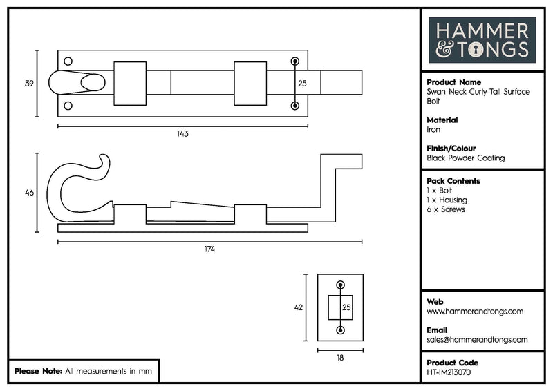 Forged from iron with a classic powder-coated finish, this beautiful bolt will imbue any environment with an air of rustic country cottage charm and character, providing the perfect amount of privacy for bathrooms, bedrooms and more.