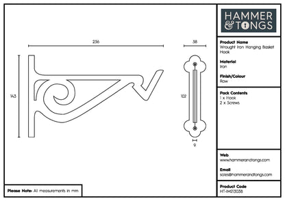 Add an authentic antique finish to any garden, patio or balcony with our Hammer & Tongs Wrought Iron Hanging Basket Hook.