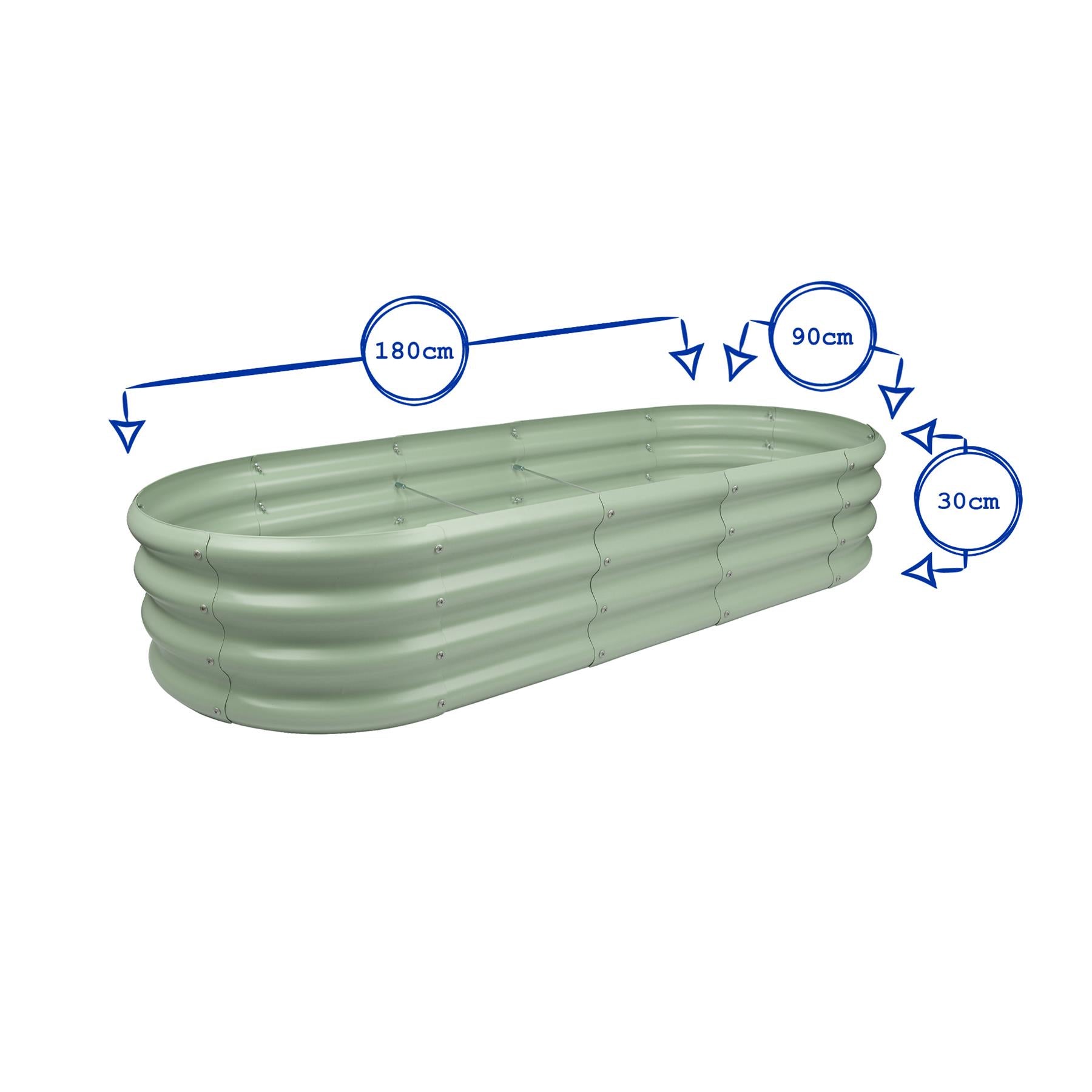 180cm x 90cm Rounded Galvanised Steel Raised Garden Bed