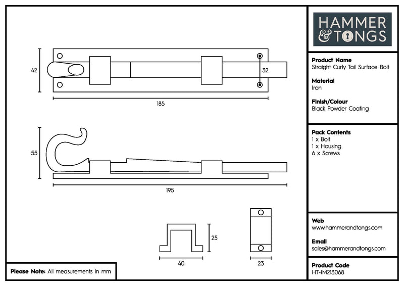 Forged from iron with a classic powder-coated finish, this beautiful bolt will imbue any environment with an air of rustic country cottage charm and character, providing the perfect amount of privacy for bathrooms, bedrooms and more.
