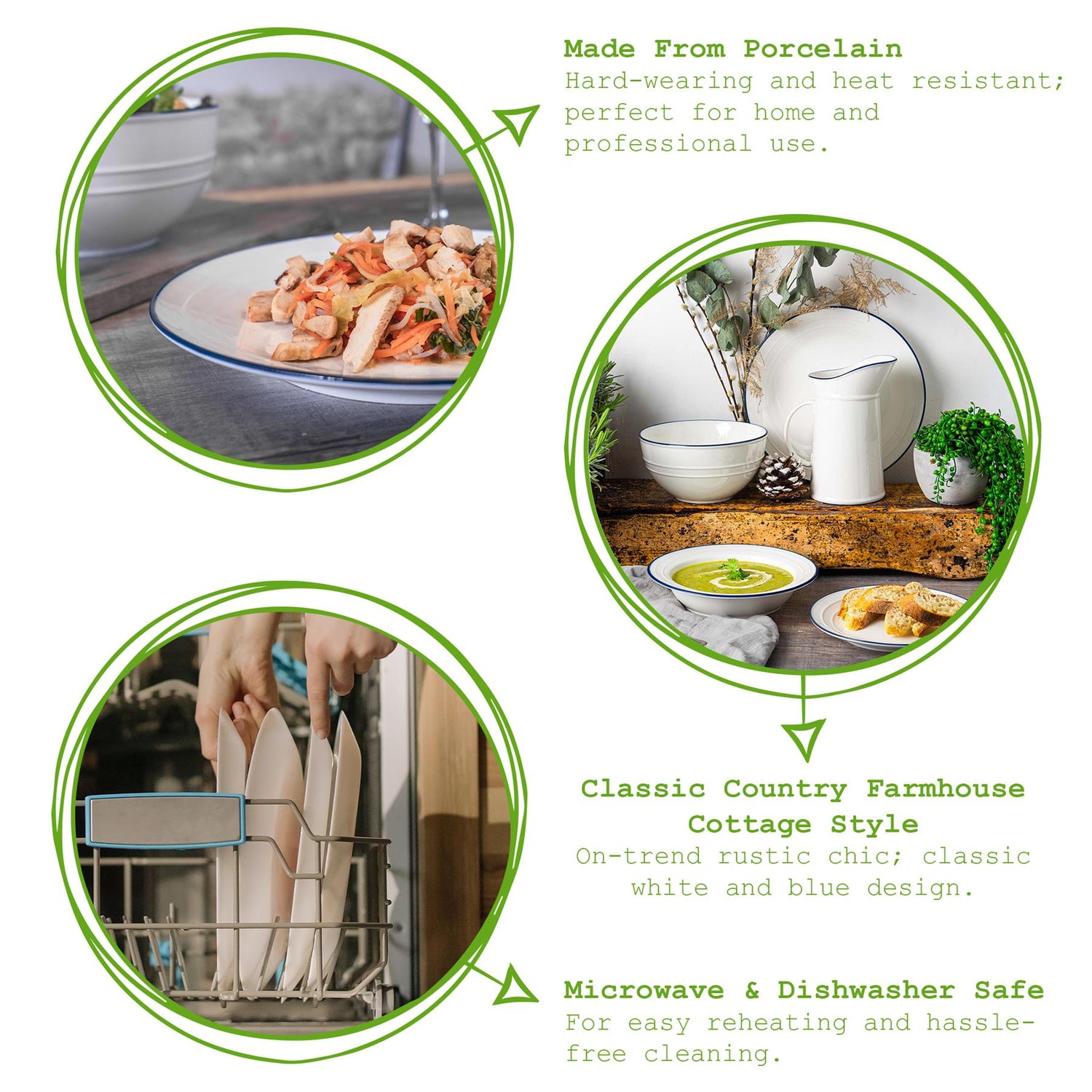 LS 18pc Farmhouse Porcelain Dinner Set - By Nicola Spring