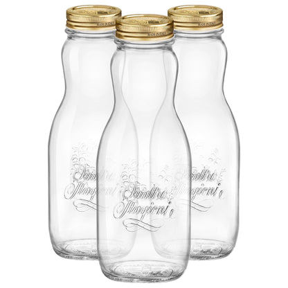 1L Quattro Stagioni Glass Juice Bottles with Screw Top Lid - Pack of 3
