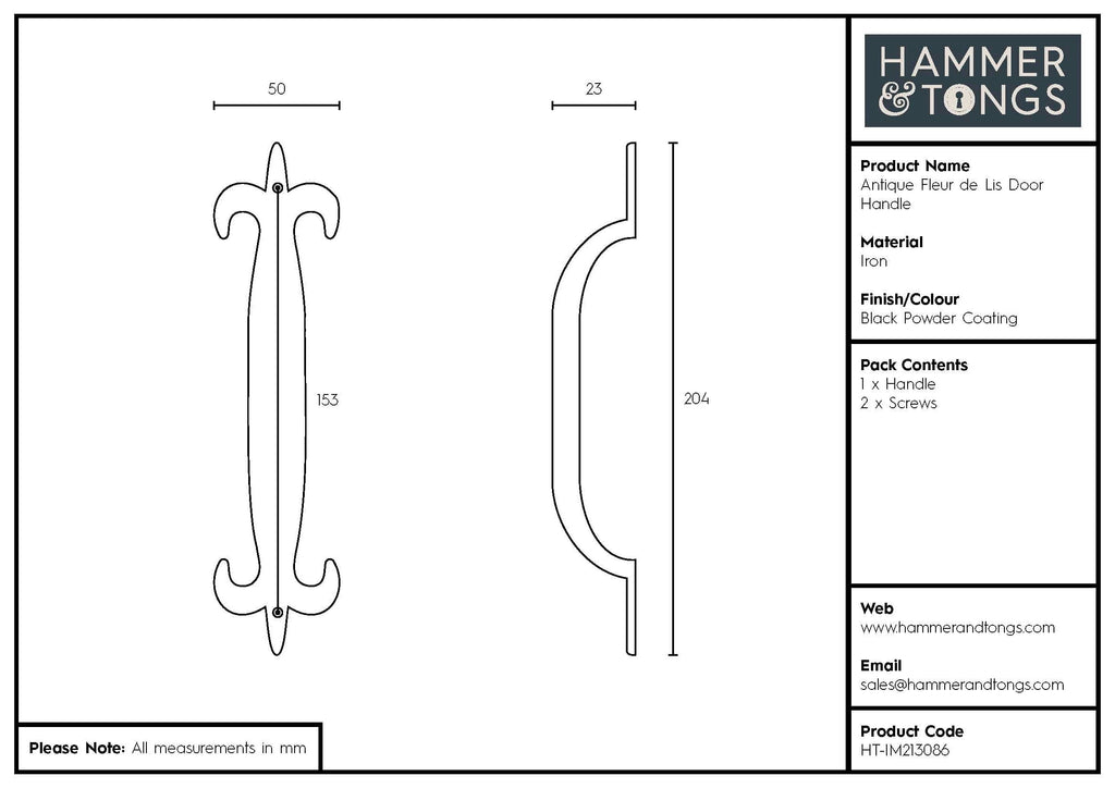 205mm Black Antique Fleur De Lis Door Handle - By Hammer & Tongs