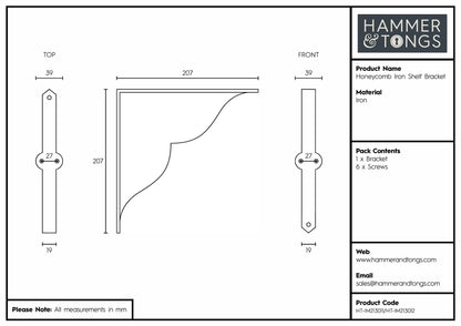 Bring timeless charm and character to your walls and storage spaces with our Hammer & Tongs Honeycomb Iron Shelf Bracket.