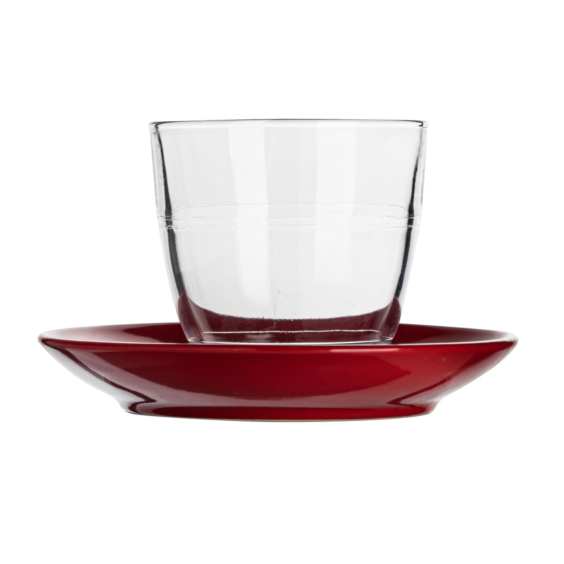 220ml Gigogne Glass Coffee Cups & Saucers - Pack of Six