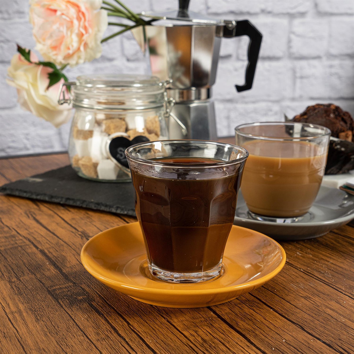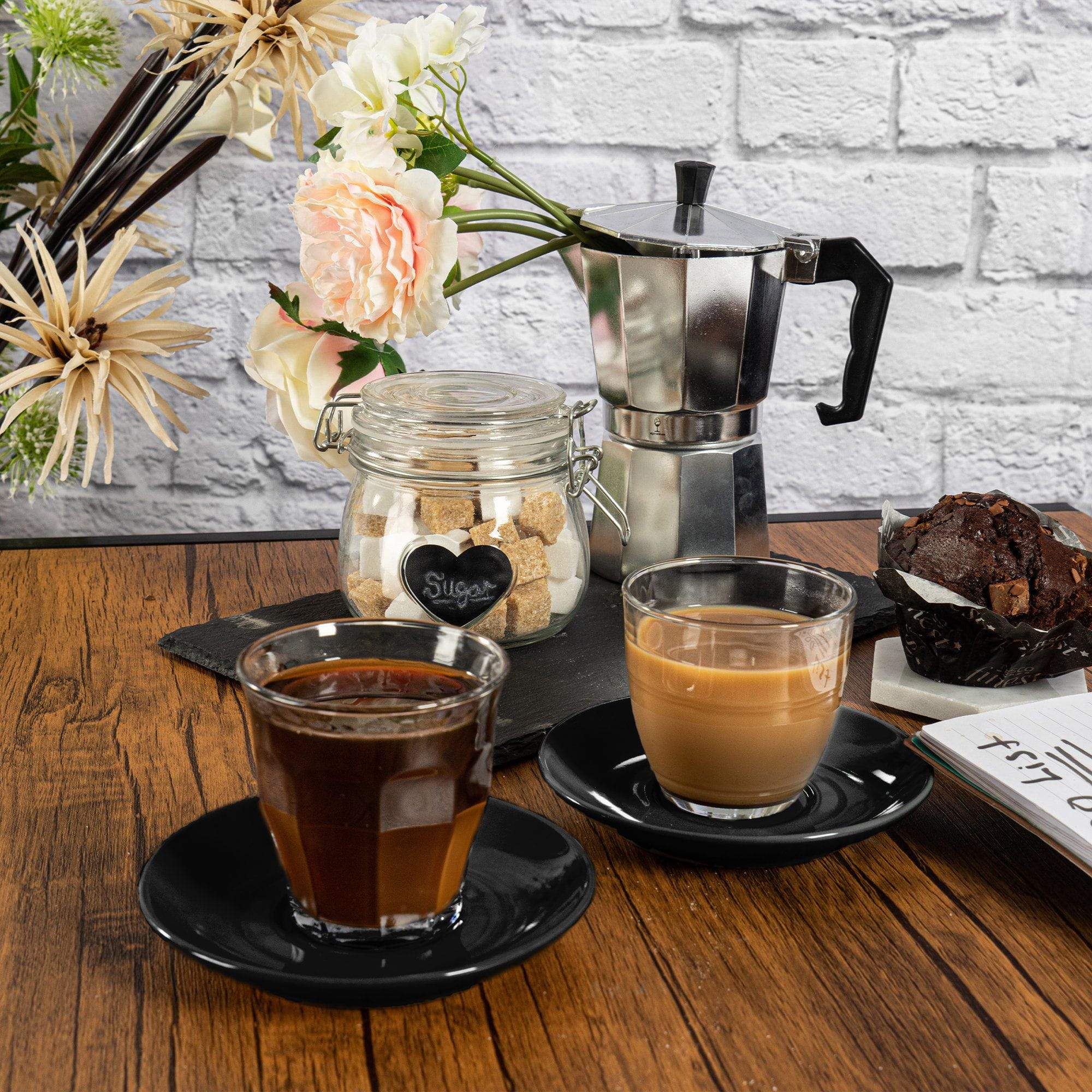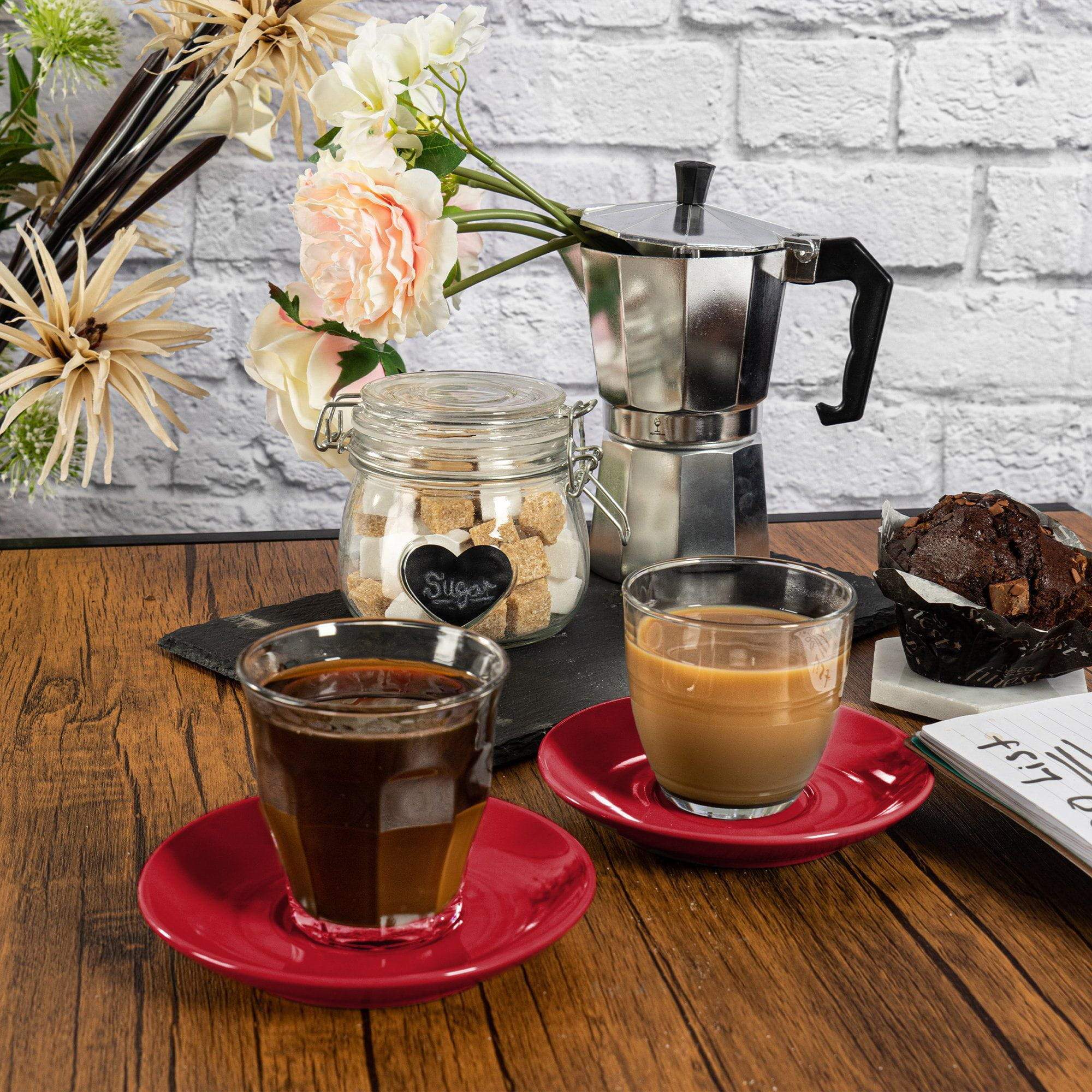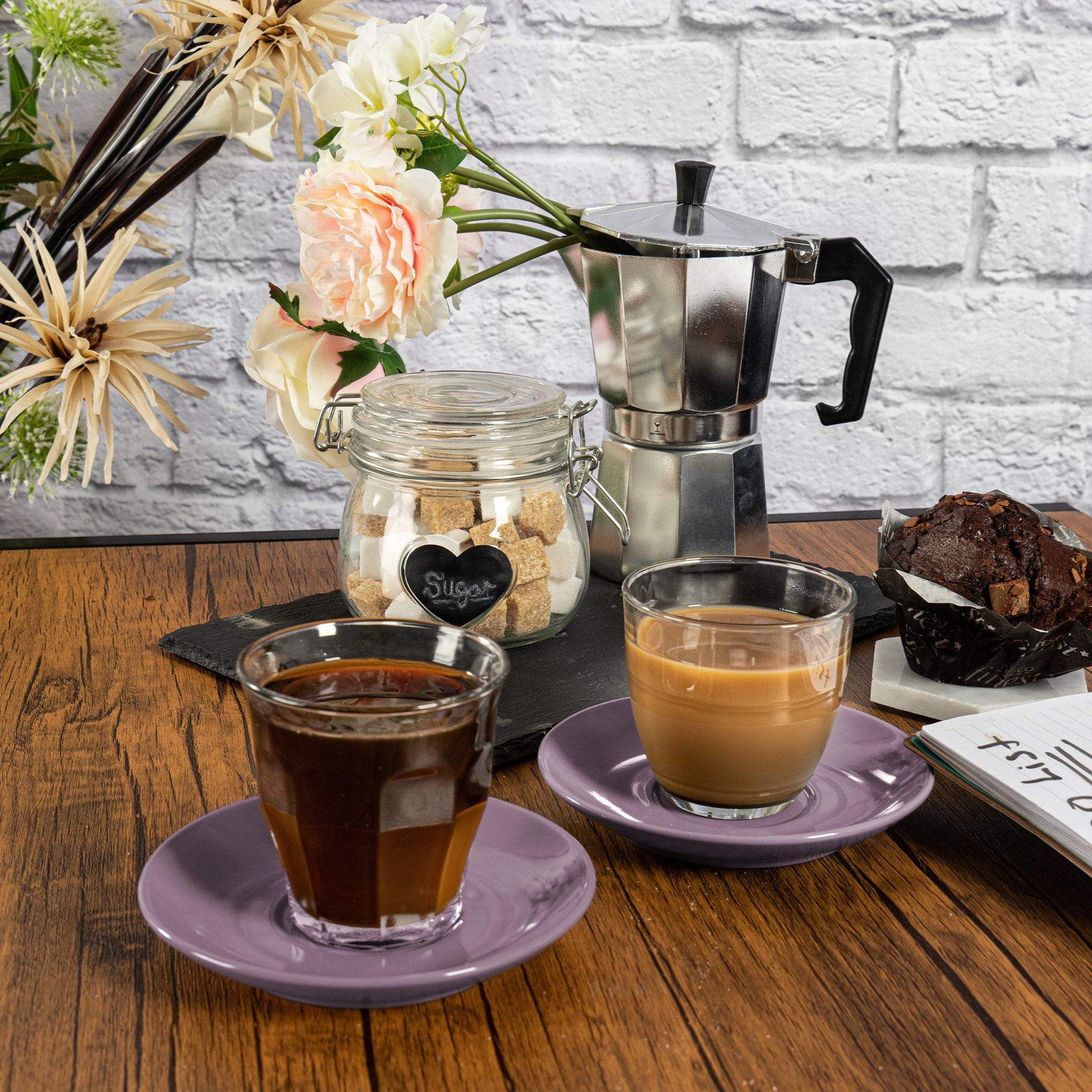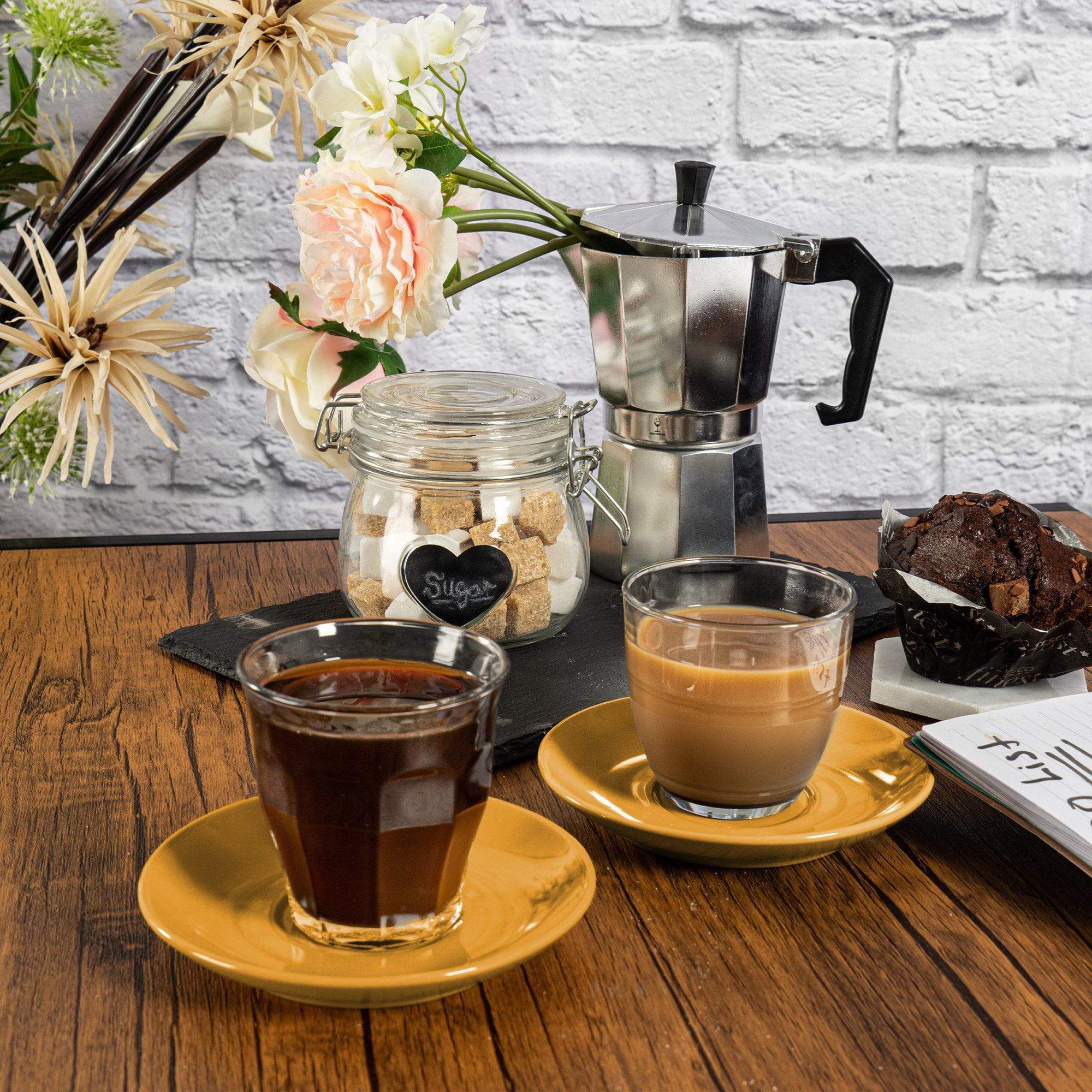 Our Duralex Gigogne Glass Coffee Cup and Saucer Sets let you transform your kitchen into your very own artisan coffee house!