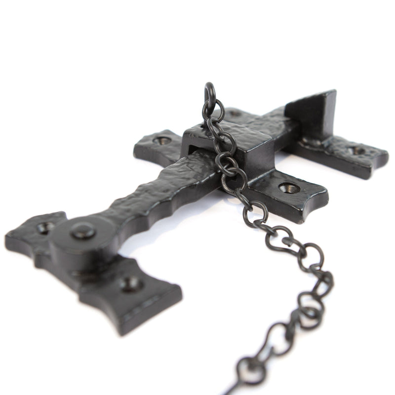 Forged from iron with a classic powder-coated finish, this elegant locking system brings rustic charm and character to any entryway; the perfect piece for protecting the privacy of bathrooms, gardens and more.